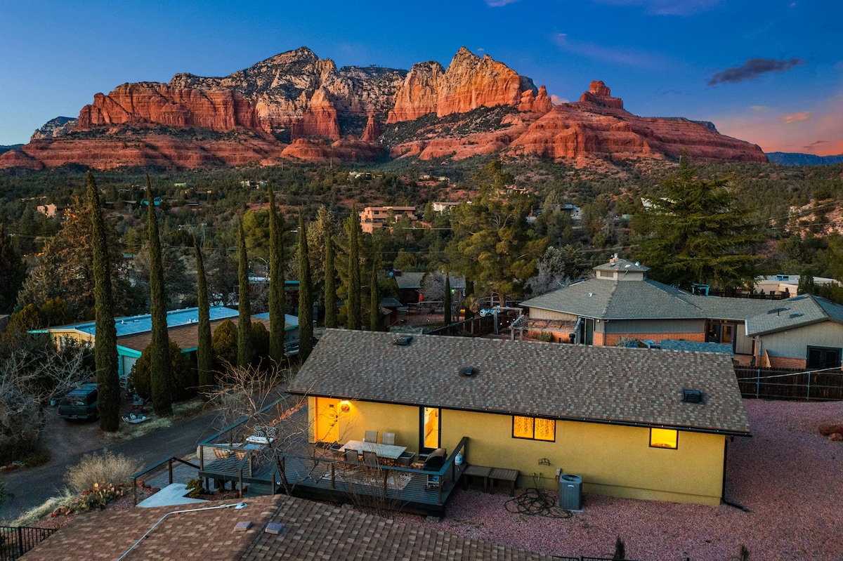 Uživajte u veličanstvenom pogledu na poznatu Sedona Red Rocks u luksuzu svoje privatne vile. Na korak ste od legendarne kapele Svetog krsta, popularnih pješačkih staza. Kuća ima modernu estetiku iz sredine prošlog vijeka, 1 bračni krevet, 1 kauč na razvlačenje s 2 kupatila, 2 prostrana dnevna boravka, kuhinju, kancelariju, vanjsku trpezariju s roštiljem. Nakon dana provedenog u pustinji, samo na maloj udaljenosti, uputite se u Downtown Sedona, istražite nevjerovatne umjetničke galerije i istražite lokalne restorane ! TPT# 21426328/ 1.800 Sq. Ft.