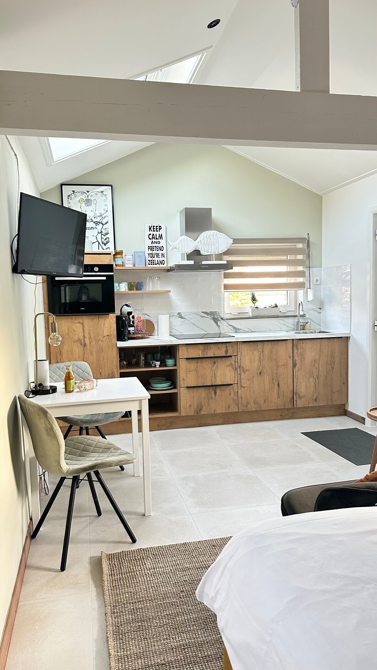 Moderne lichte in 2025 gerenoveerde studio geschikt voor koppel,soloreiziger,klein gezin Gevestigd in gezellig oud dorpcentrum met diverse leuke cafees en heerlijke restaurants Strand,cultuur en mooi natuurgebied op 3 km Middelburg,Vlissingen,Brugge,Gent op 30 km