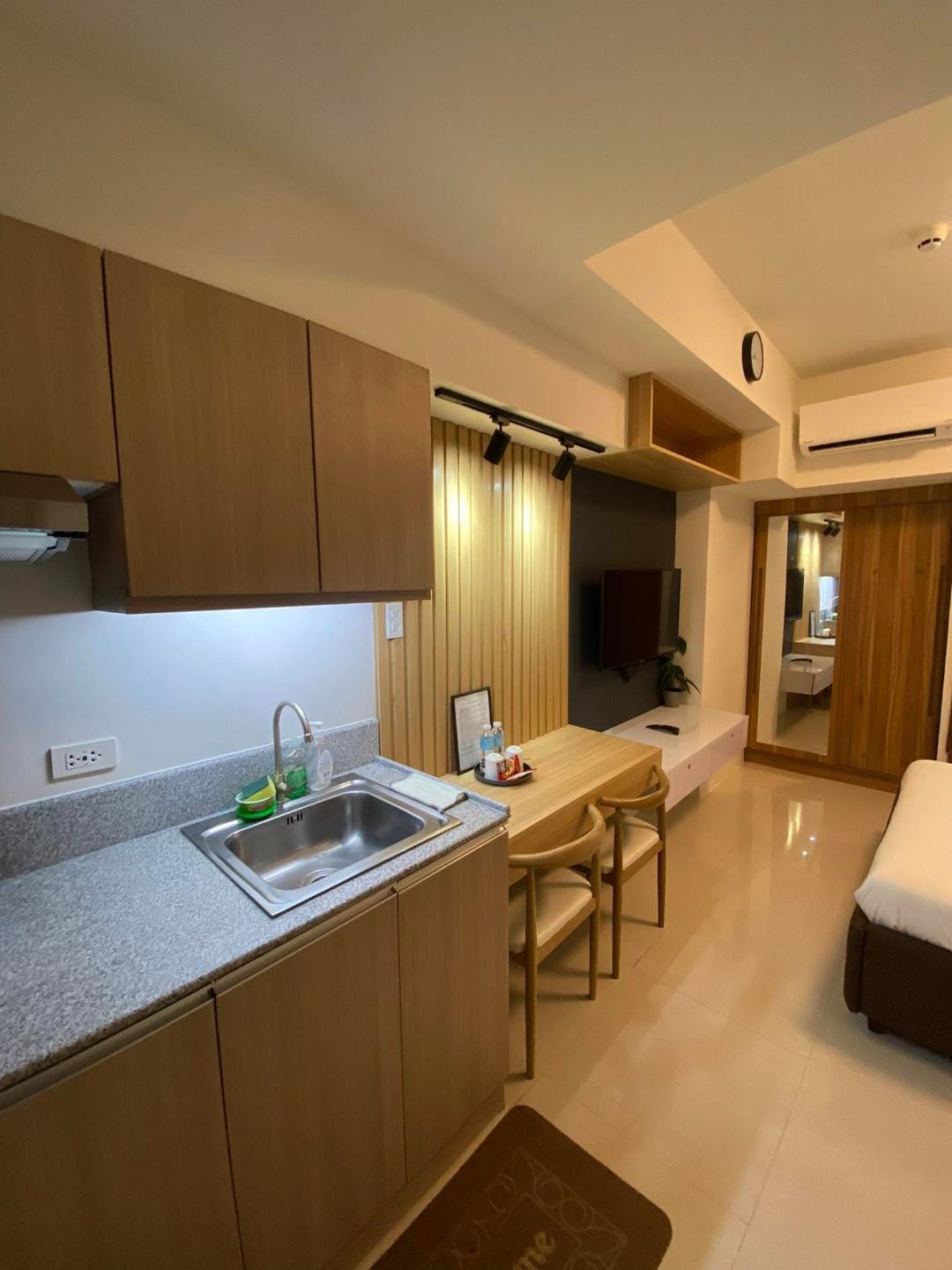 Stilist urbani kondominij u srcu Davao Cityja. Dobro došli u svoj savršeni urbani odmor! Naš elegantni i moderni kondominij, koji se nalazi u samom srcu Davao Cityja, nudi nenadmašnu kombinaciju komfor, stila i praktičnosti. Bilo da dolazite poslovno ili u slobodno vrijeme, pronaći ćete sve što vam je potrebno za nezaboravan boravak. Ovaj studio stambeni kondominij se strateški nalazi u okrugu Abreeza, nedaleko od trgovačkog centra ayala.