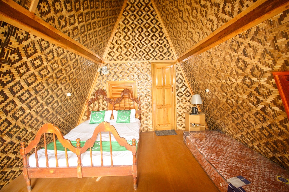 Opustite se s cijelom porodicom u ovom mirnom smještaju. Ova vila ima 2 kreveta 2 privatna kupatila opremljena bojlerom i 1 toaletom u dnevnom boravku i balkon s prekrasnim pogledom na planinu Galidge i opremljen pametnim TV-om u svakoj sobi. Pristup koji prolazi angkot koji vodi do planinskog galidgea s tržnice Indihiang. 15 menija motornim vozilom ili automobilom do planine Galunggung .5 minuta hoda do štandova s hranom i prodavnica hrane.