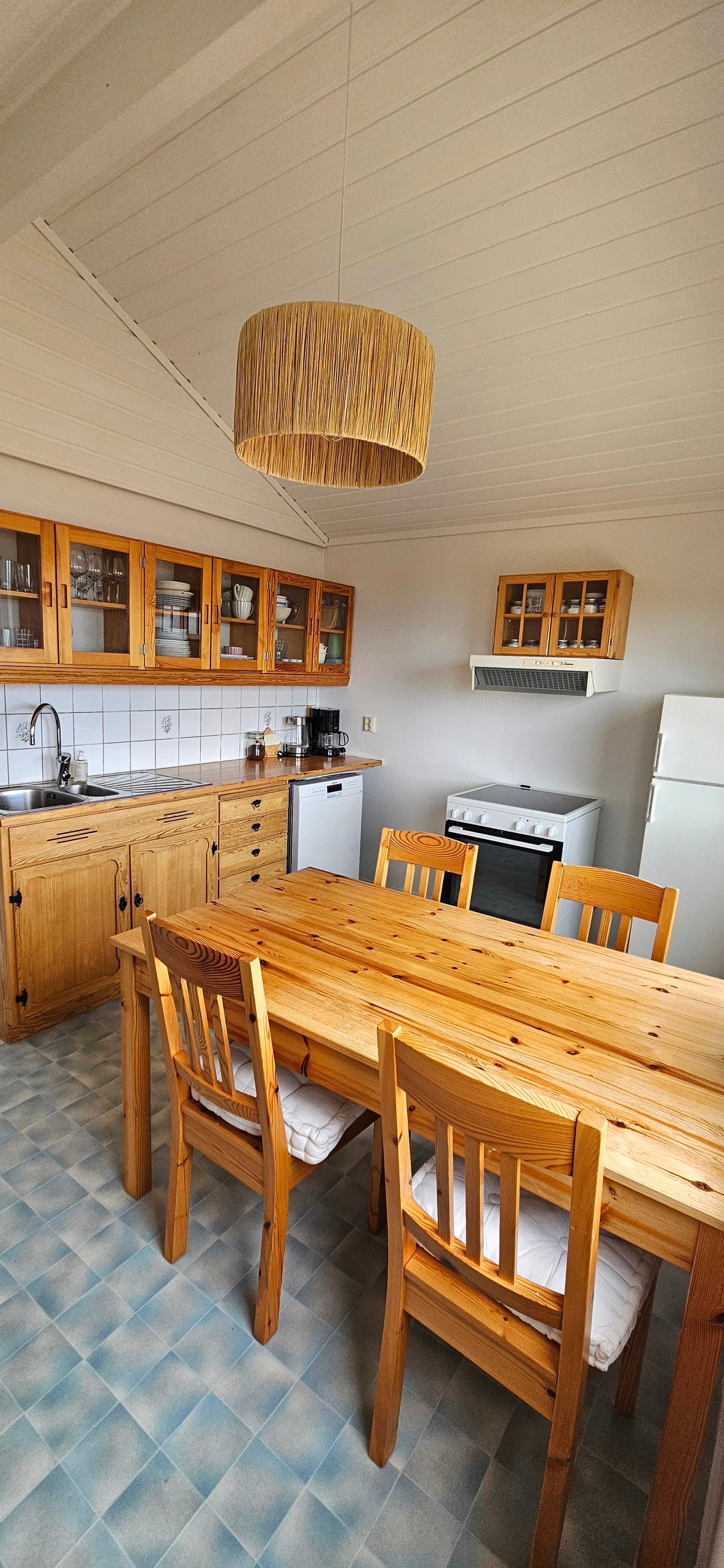 Vikendica iz 2017. godine s prekrasnim pogledom na jezero u kojem se može uživati s velikih prozora ili iz đakuzija na terasi. Unutrašnjost ima mirne prirodne boje, u nordijskom stilu. Kamin u dnevnoj sobi, otvoreno rješenje iz kuhinje. 1. sprat: 2 spavaće sobe, 2 kupatila, dnevni boravak i kuhinja, kao i vešernica i hodnik. 2. sprat: 2 spavaće sobe i potkrovlje s dvostrukim kaučem na razvlačenje. Ukupno 14 kreveta, plus kreveti za putovanja. Eventualno dodatni madraci za pod. Odlične mogućnosti za šetnje u okolini, iznajmljivanje čamaca, kao i lijepa mala pješčana plaža ispod hotela Panorama i obližnjeg odmarališta.
