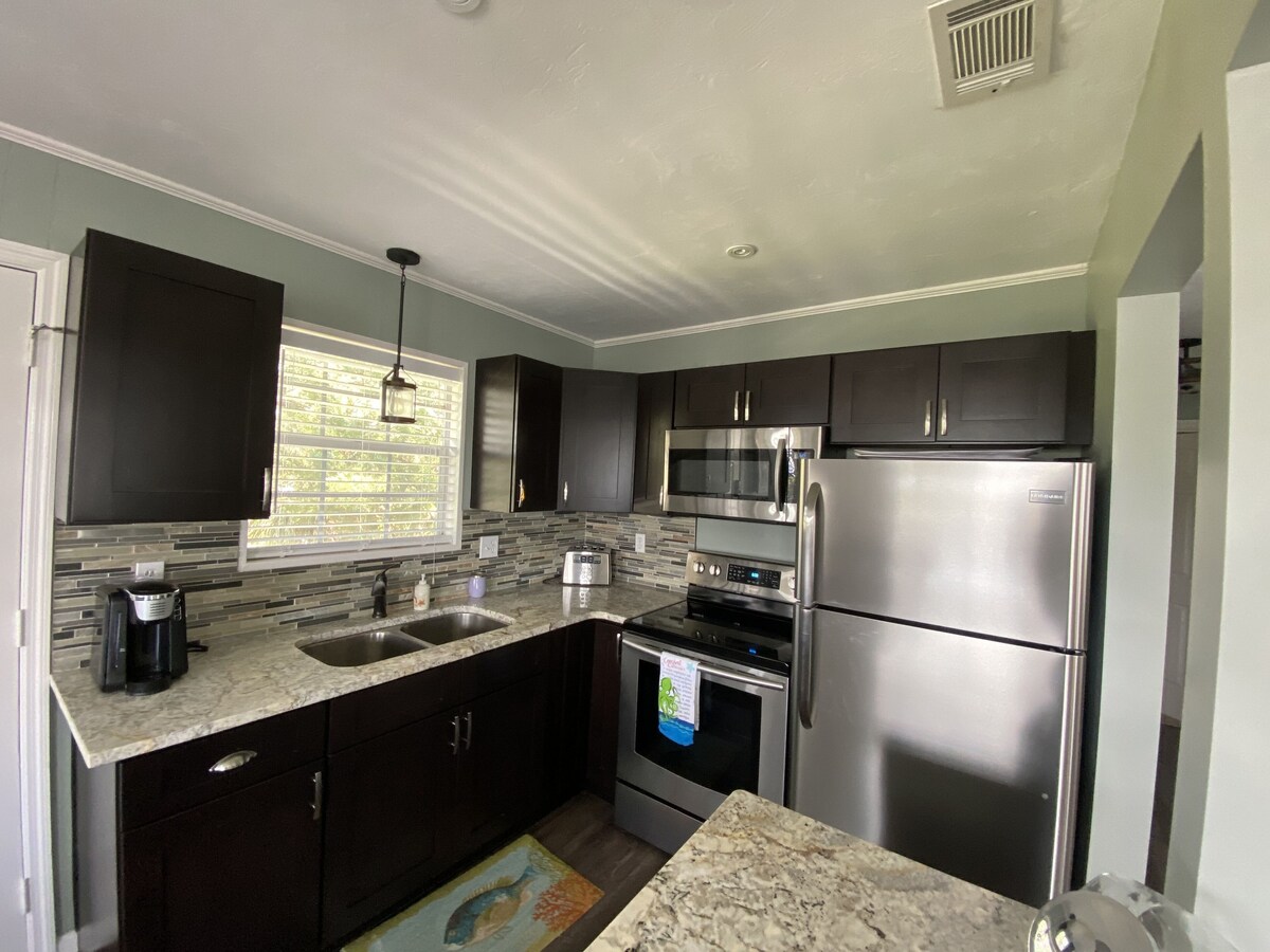 Dobro došli u The Sand Dollar u Riverwalk Cottages, jedinica 204A. Ovo je elegantan studio bungalov koji se nalazi u srcu Carrabellea. Sand Dollar je udoban i luksuzan. Mi primamo KUĆNE LJUBIMCE! Molimo vas da UKLJUČITE kućnog ljubimca u svoju rezervaciju. Pređite ulicu do trgovina, restorana i barova na obali rijeke. Dođite i istražite ovo neobično ribarsko selo i naš zaboravljeni obalni raj. PARKING ZA BRODOVE je dostupan! Potražite znak Sand Dollar