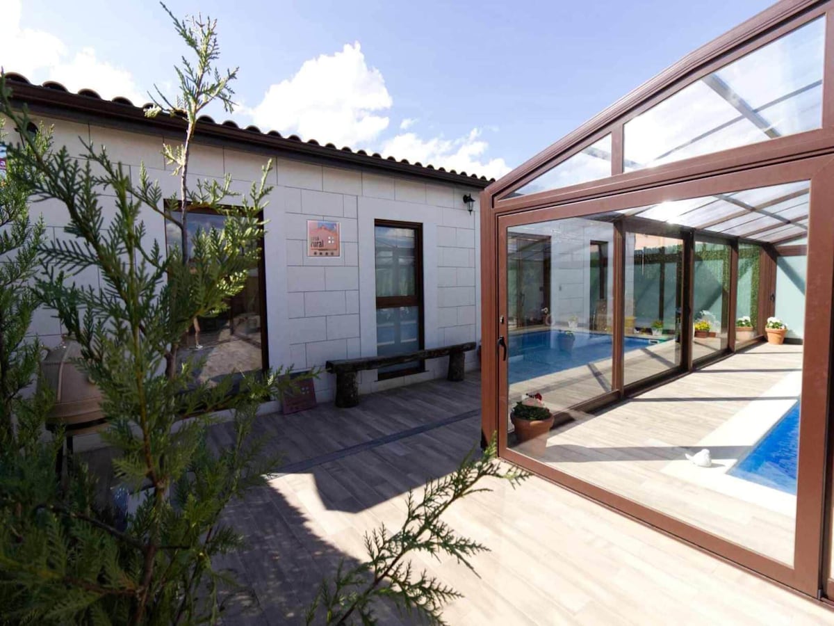 Casona, con varios siglos de antigüedad, a los pies de un castillo. Con 300 m2 y capacidad para 12 huéspedes. Tiene 6 habitaciones, con baño privado y camas extragrandes. Salón de 80 m2 y chimenea. Suelo radiante, parking gratuito y wifi. Está ubicada en una finca de 4 hectáreas, por lo que el huésped disfrutará de 20.000 m2 de praderas de hierba, barbacoa y dos charcas de agua de río, todo con vistas al castillo. La combinación perfecta de la tranquilidad del campo con la comodidad y el lujo.