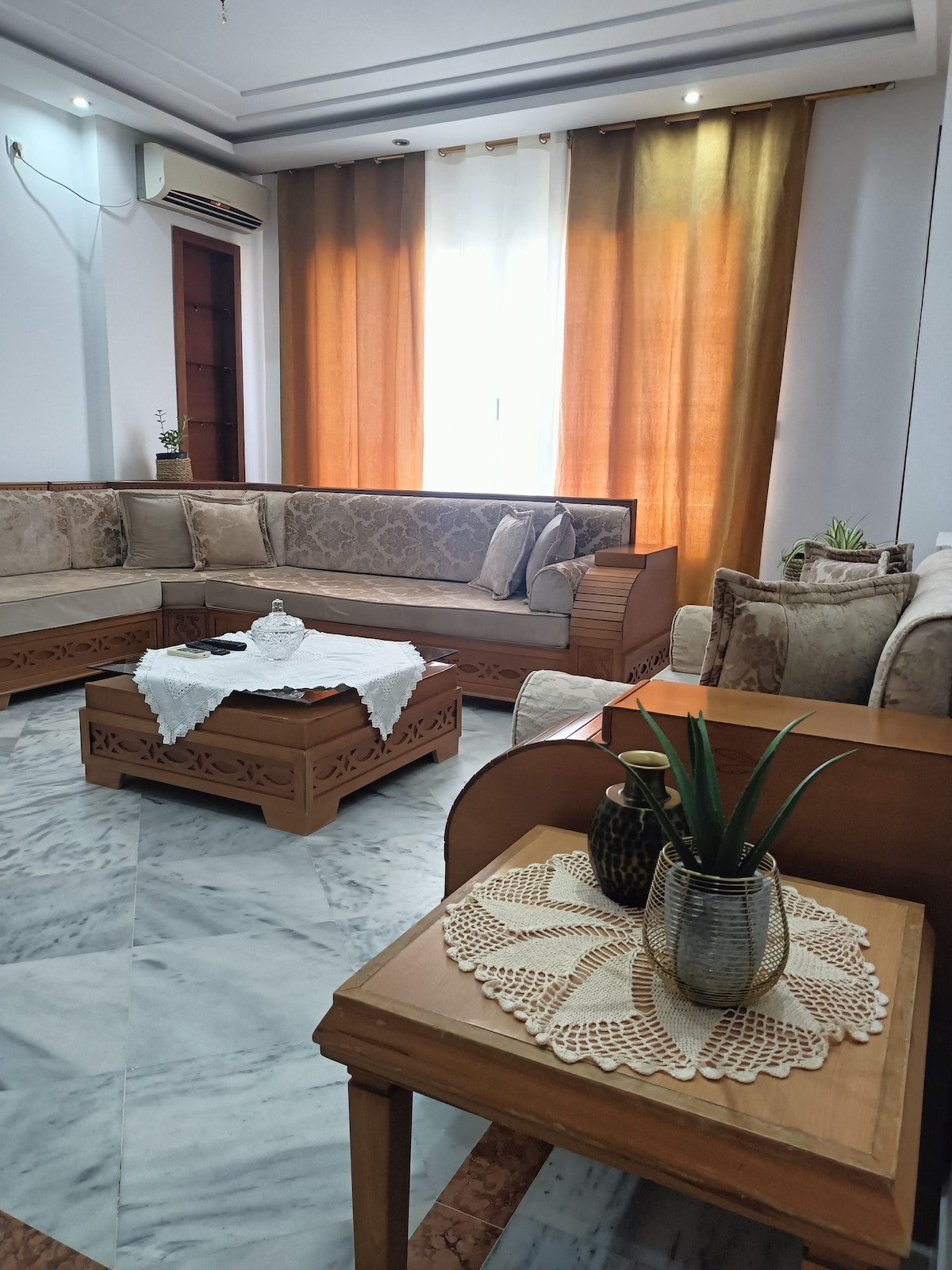 Preskočite stres, zadržite zabavu! Prošetajte do plaža, barova, butika i najboljih lokalnih restorana za nekoliko minuta; nema potrebe za saobraćajem ili taksijima. Idealno za grupe koje vole biti u središtu zbivanja! (Tej Marhaba, Riadh Palm, mövenpick hoteli i , Saloon, Legends, Bonapart, First, restorani su udaljeni pješice.) Upozorenje: 🚶♂️ Ne razmišljajte o liftu kao o mini treningu. 🚗 Nema privatnog parkinga, ali su u blizini javne opcije.