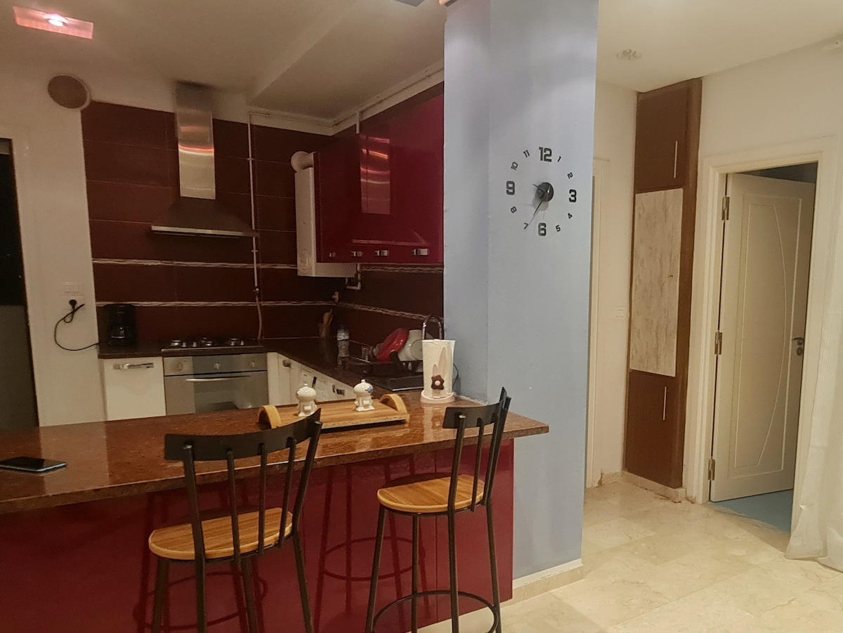 Prekrasan i potpuno namješten stan udaljen 5 minuta hoda od plaže. Lokacija je savršena, između turističke zone, plaže i starog grada (Medina). Do svega se može doći pješice, uključujući restorane, trgovine, supermarkete, barove, plažu i souk. Sigurno okruženje za večernje šetnje i noćne izlaske. Ovaj stan od 80 kvadratnih metara ima 2 spavaće sobe, dnevnu sobu, kuhinju, trpezariju, kupatilo i balkon. Cijela ravna, dnevna soba i dvije spavaće sobe imaju klima-uređaj