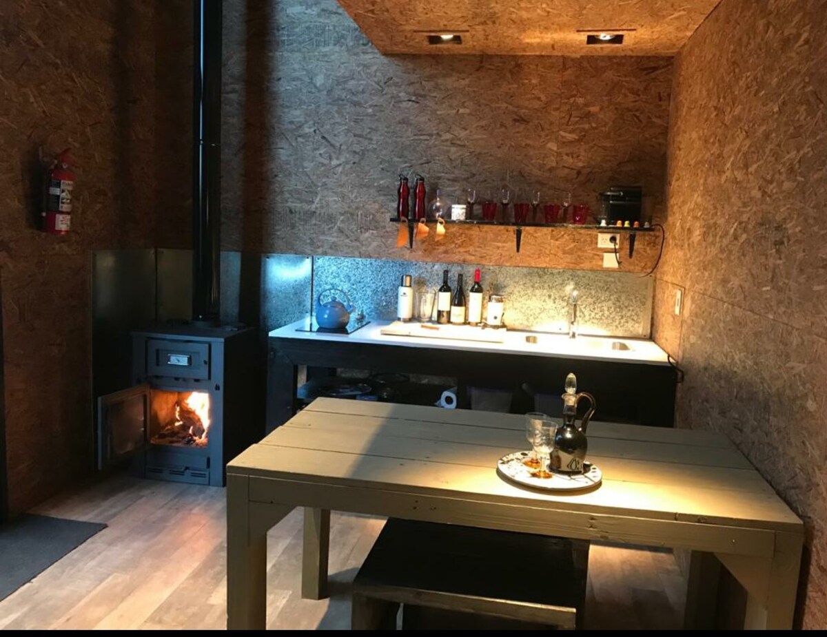 Este es un lugar único ya que es una casa con todo el confort en el medio de un bosque en el Parque Nacional Lago Lacar. Los techos de doble altura, todo en madera con ventanales que incluyen vistas a un paisaje de montaña rodeado por árboles. En temporada de Invierno su ubicación privilegiada brinda al huésped la posibilidad única de salir esquiando
