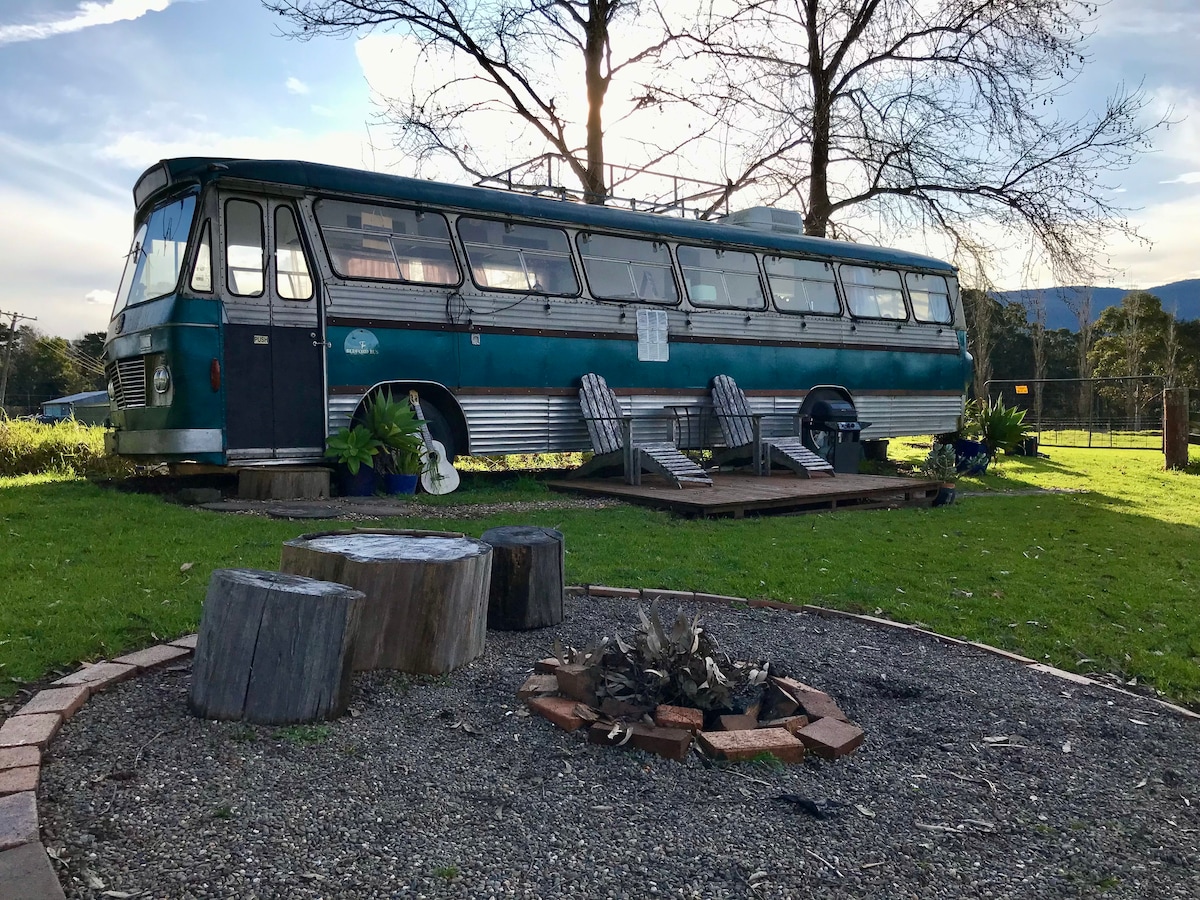 Welcome to our new Retired Bus In The Womabarra's. This rustic Bus is suited to people who like to go back to basics and love the camping bush vibes. It is set in the sub-tropical basic garden of my home in Wombarra. Nestled between the Illawarra Escarpment and beach, surrounded by nature, peaceful bird singing surroundings. She comfortably accommodates 6 guests. The location is 2 minutes walk from the station and 7 minutes walk to stunning, unspoiled, surf beaches and rock pools.