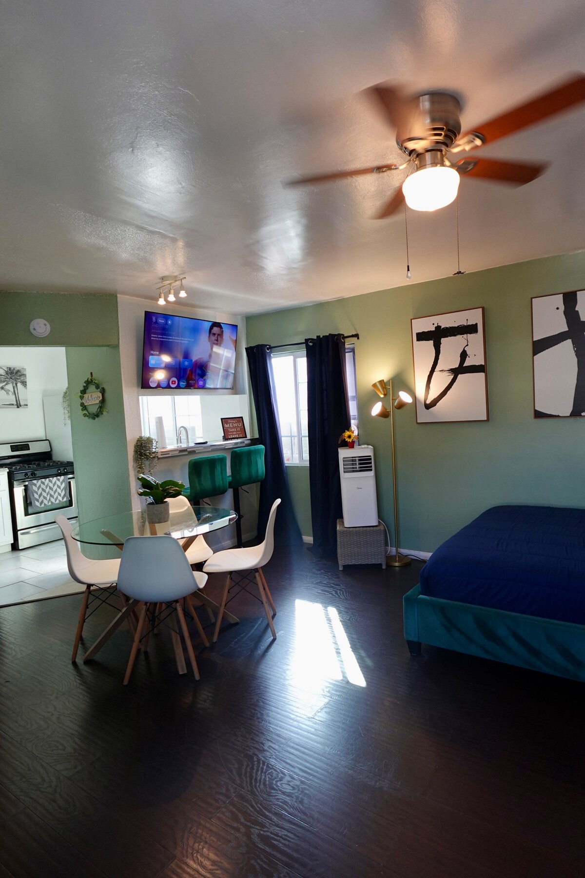Opustite se u mirnom privatnom vrtu sa zasebnim ulazom, idealnom za parove, samostalne putnike ili presjedanja na aerodromu LAX. Uživajte u mirnom okruženju, pristupu dvorištu i jednostavnom pristupu aerodromu LAX, Disneylandu, trgovinama i restoranima. Studio uključuje čajnu kuhinju, filter za vodu u cijeloj kući i udoban prostor za opuštanje nakon putovanja ili razgledanja. Pripojen na zadnju stranu glavne kuće, potpuno je privatna sa svojim ulazom. Dostupno za boravke istog dana i u zadnji čas.