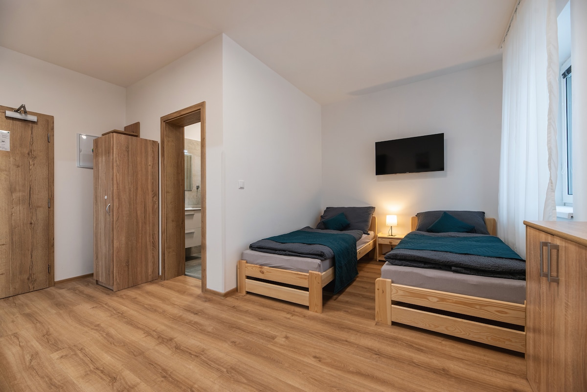 Novi klimatizirani stan u potkrovlju ima bračni krevet i kauč na razvlačenje koji pruža dva dodatna prostora za spavanje. Uključuje opremljenu kuhinju, kupatilo s tušem, mašinu za pranje veša, fen za kosu i peglu. Cijeli stan je prekriven brzim Wi-Fi mrežom. Kablovska TV je dostupna, uključujući HBO. U blizini se nalazi restoran Svatoboj, hrana, popularna biciklistička staza s prekrasnom prirodom i jedan od najboljih wellnessa u Brnu - 4. Nudimo samostalni dolazak!