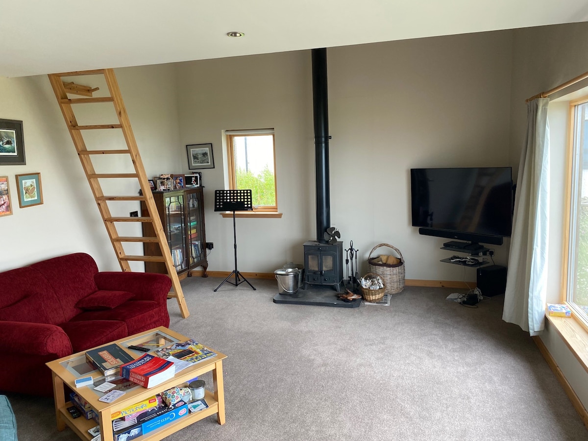 Regional finalist featured on BBC Scotland Home of the Year 2023. Skeir a Lidda (meaning the flat skerries) takes its name from the sea shore immediately below the property. Constructed in 2021 it has been purpose built to the highest modern standards. Conveniently situated, Skeir a Lidda is easy to get to and is a perfect base from which to explore the islands. While the annexe is connected to the host's own house it is self contained and private. Friendly help and advice is next door!