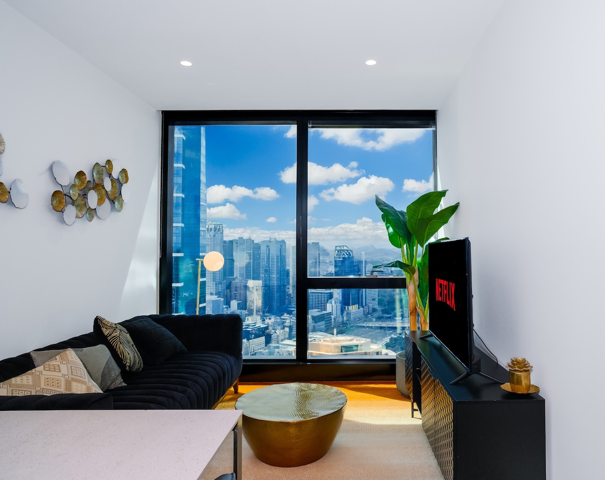 Boravite u modernom dvosobnom stanu s 2 kupatila u Australiji 108, jednom od najpoznatijih tornjeva u Melburnu. Uživajte u prozorima od poda do plafona s prekrasnim pogledom na Port Phillip Bay, rijeku Yarra i Crown Casino. Smješten u srcu Southbanka, samo nekoliko koraka od Crown, Southbank Promenade i glavnih atrakcija Melbournea, savršenih za elegantan odmor u gradu! s cijelom porodicom u ovom elegantnom smještaju. Nema pristupa bazenu i teretani!