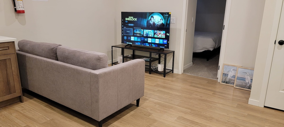 Udoban i moderan apartman za goste | Novoizgrađeno utočište s privatnim ulazom Uživajte u elegantnom boravku u ovom jednosobnom podrumskom apartmanu u Calgaryju, poznatom po parkovima, pješačkim stazama, prodavnicama i restoranima. ✔ Privatni ulaz i samostalni dolazak ✔ Bračni krevet (širok 150-179 cm), pametni TV od 55inča s Netflixom, Amazon Prime i udobnom garniturom ✔ Potpuno opremljena kuhinja i moderno kupatilo ✔ 5 minuta vožnje do prodavnica, trpezarije i apoteke ✔ Jednostavan pristup centru grada, Fish Creek Parku i Banffu Rezervišite sada za opuštajući boravak