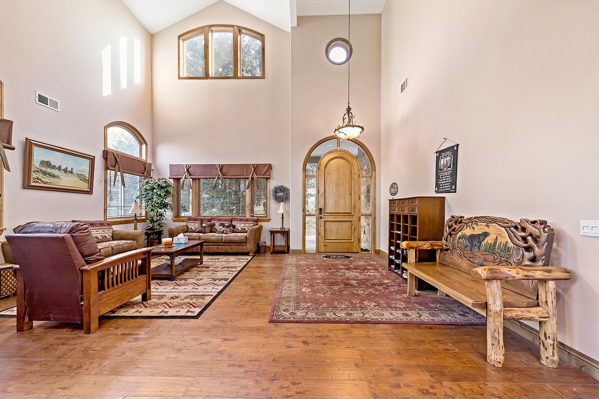 Dok se penjete stepenicama koje prolaze pored autohtonih stijena i drveća, vidite brvnaru u obliku slova A u šumi koja počinje da viri i poziva vas. Kad se popnete na prednju terasu, veliki prozori s oknima privlače vas u ovu prostranu brvnaru s visokim stropom i otvorenim konceptom. Unutra, ovi isti prozori koji su vas privukli, ohrabrit će isto gledanje sada, osim izvana. Ukusno dizajnirani i opuštajući, možda ne želite otići, iako Big Bear i Lake Arrowhead dolaze u roku od 30 minuta vožnje... Dobro došli u The Scandia 🦌