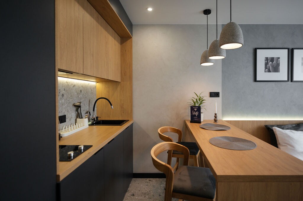 Otkrijte minimalistički mir u našem dizajnerskom jednosobnom stanu u srcu Kijeva. Prostor: bračni krevet (širok 150–179 cm), pametni TV, klima-uređaj i brzi Wi-Fi. Kuhinja: Potpuno opremljena s kafom/čajem. Lokacija: Nova zgrada u blizini stanice metroa Universytet i parka Ševčenko. Mirno, a opet samo nekoliko koraka od najboljih kafića. Pogodnosti: Privatni balkon, pogled na grad i jednostavan samostalni dolazak. ✨ Čist, miran i na savršenoj lokaciji. Rezervišite svoj jedinstveni Japandi doživljaj već danas!