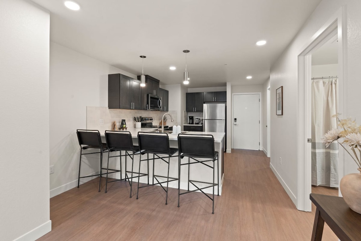 Welcome to J&K on Main! - Thoughtfully renovated with high-end finishes. - Decor and features worthy of any design-admirer’s dream. - Luxury Memory Foam Queen bed + sleeping for one on the couch. - Shared pool table room for socializing. - Fast Business class Wi-Fi. - Smart TV - Full access to your travel apartment, fully stocked with all the amenities you’d find at home. - Convenient distance to Spokane’s best dining, shops, bars, and cafes.