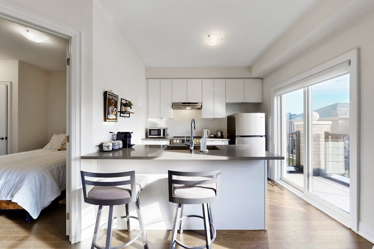 „Suite Escape” nudi luksuzni privatni apartman za goste u Pickeringu u Ontariju. Potpuno opremljen sa udobnim bračnim krevetom, spa kupatilom, radnom stanicom, TV-om od 65”, klima-uređajem, kaminom i čajnom kuhinjom. Praktično smješten na adresi Hwy 401 & 407, GO Train, Durham Transit, trgovački centri, kina, kockarnice, staze za obalu i pješačenje, tereni za golf + vinarije u kratkoj šetnji ili vožnji. Aerodrom u centru Toronta i Pearson udaljen je 30-40 minuta. Uronite u luksuz, spokoj i jednostavan pristup najboljem u Pickeringu i šire.