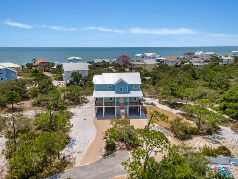 Just over the dune line road from quiet east end beaches. Great fishing and uncrowded relaxing. Excellent for families or couples (4 person maximum) with private spaces indoor and out. Two master bedrooms with kings and pillow tops. Second floor remodeled and decorated (photos Feb 2026). Shared pool and gulf views from front room and master. Front Deck. Large furnished screened porch. You will be hard pressed to find a better spot for your vacation dollars. Beach wagon, canopy and chairs.