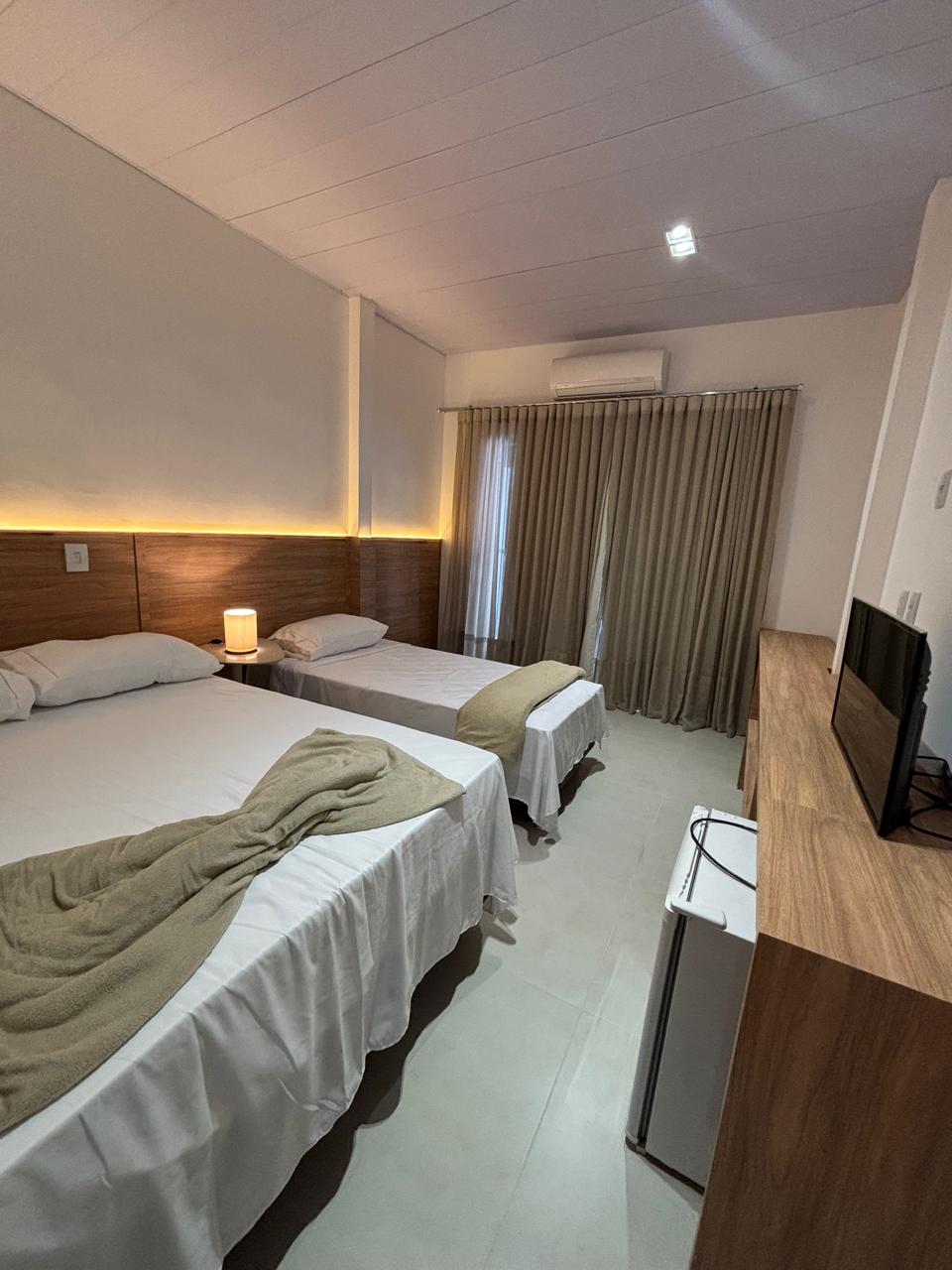 quarto completo com tv frigobar central de ar condicionado, chuveiro elétrico, camas confortáveis. Você vai adorar compartilhar fotos deste lugar único com seus amigos.