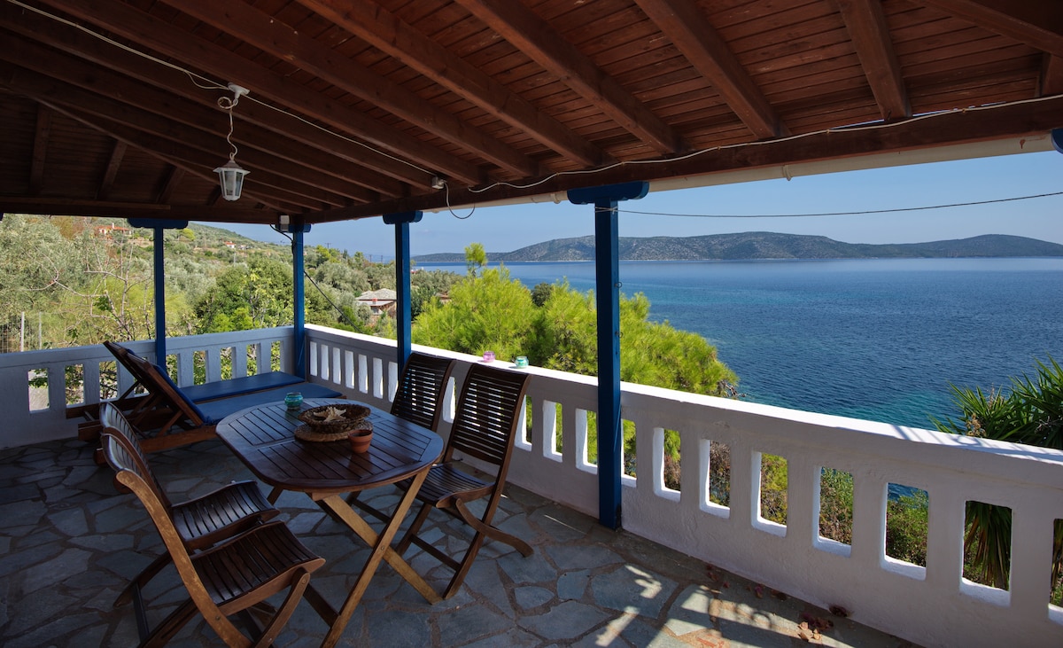 Designed according to the standards of traditional Greek architecture, the StoneHouse is set in a fully private hill among olive and fruit trees as well as colorful flowers. An ideal place to drink a glass of wine as dusk and sunset colors fill the sky, with a breathtaking view of the iconic beach of Agios Dimitrios, the most beautiful beach of the island of Alonnisos. Swim in the "Natura" protected beach, take a hike in a picturesque scenery or just enjoy your privacy and relax..