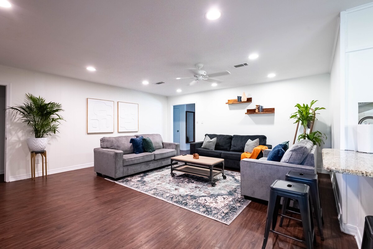 Opustite se u ovom elegantnom MCM prostoru. Pažljivo smo uredili ovaj stan s 2 spavaće sobe i 1 kupatilom (1500 kvadratnih stopa) koristeći elemente modernog dizajna iz sredine prošlog vijeka za jedinstven osjećaj. Bilo da ste na poslovnom putovanju ili putujete s prijateljima/porodicom, ne tražite dalje!! Svaki centimetar ove jedinice ažuriran je od obrađenih tvrdih drva do kvarcnih ploča, svih novih uređaja i dizajnerskog namještaja. Objekat ima mašinu za pranje/sušenje veša u jedinici i parking izvan ulice. Ovo je TAJ!! ☺️ 🏡 ✨