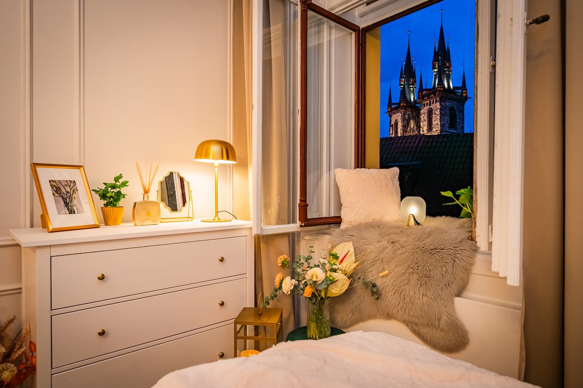Lijepo uređeno potkrovlje s pogledom na Praški dvorac