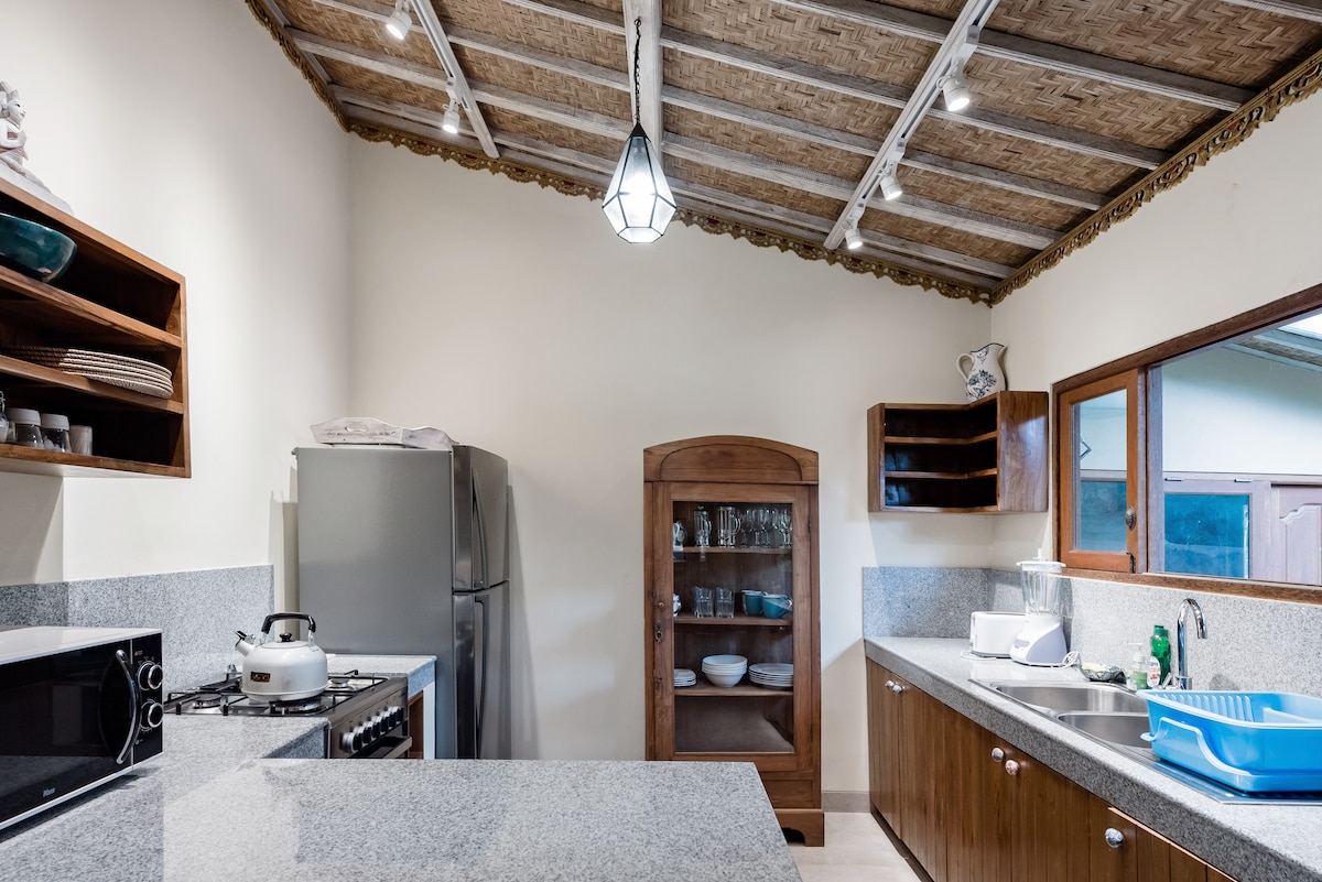 Prekrasna privatna vila s jednom spavaćom sobom i bazenom veličine 6 x 3 metra.sigurno,privatno,sigurno. bujna bašta i zaštićena, ali otvorena kuhinja za objedovanje i opuštanje pored bazena. bračni krevet,kupatilo otvoreni tuš, potpuno opremljena kuhinja, klima-uređaj, TV, odličan Wi-Fi, svakodnevno čišćenje i set doručak su uključeni. u lijepom selu Penestanan Kaja. Udaljen je samo 2 km od centra Ubuda.