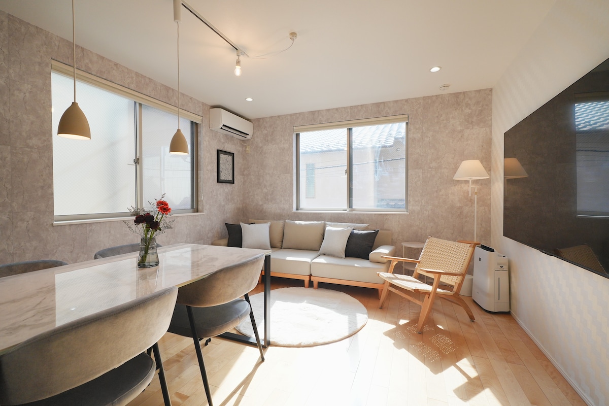 Trospratna luksuzna vila koja se nalazi u okrugu Sumida, 3 minute hoda od stanice Oshiage, izlaz A3(postoji lift) Potpuno nova kuća izgrađena 2023. godine. Ima 2 toaleta, tuš kabinu s jacuzzijem, grijanje/sušenje i profesionalni tim koji odgovara na vaša pitanja i zahtjeve. Odlična lokacija u Tokiju s praktičnim prevozom Oshiage St.--3 min Direktno povezan s aerodromom Narita/Haneda, Asakusa, Shibuya itd. To je vaš prvi izbor za smještaj kada putujete u Tokio.