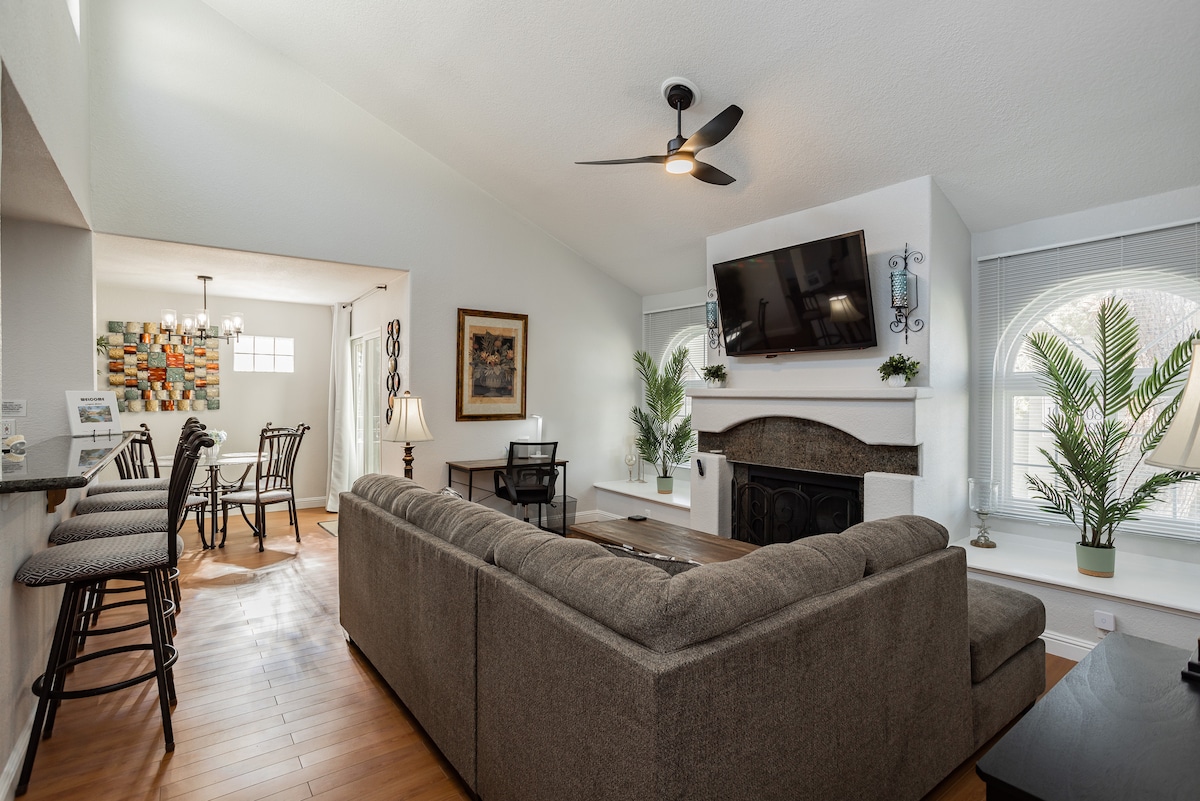 Preuređeni stan s jednom spavaćom sobom, udaljen manje od 1,6 km od Las Vegas Stripa, u sigurnoj, zaštićenoj zajednici. Uživajte u bazenima, masažnim kadama, teretani, BESPLATNOM PARKINGU I BEZ NAKNADA ZA ODMOR. Potpuno preuređen enterijer, potpuno opremljena kuhinja, aparat za kafu Keurig i kafa. Brz Wi-Fi, pametni TV s Netflixom i YouTubeTV-om za lokalne kanale i sport, te udoban životni prostor. Savršeno za slobodno vrijeme, koncerte, poslovna putovanja i produžene boravke.
