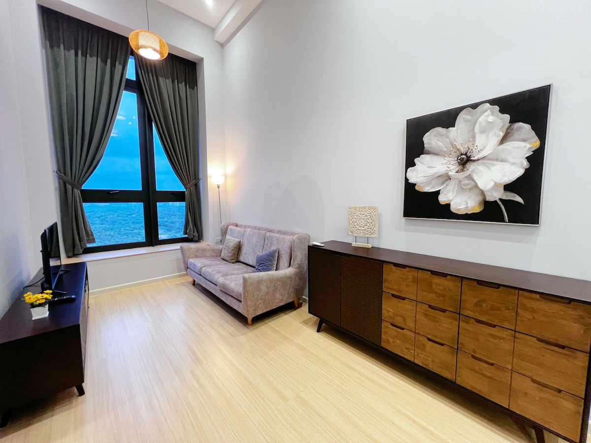 NAPOMENA: Prije rezervisanja pregledajte i prihvatite sva pravila kućnog reda. Naše luksuzno potkrovlje na visokom spratu Sunway Grid Residence idealno je mirno utočište za parove ili cijelu porodicu koji se žele uroniti u udobnost doma. Strateški smješten u srcu Sunway Cityja Iskandar Puteri, samo 5 minuta udaljen od Singapura 3 min hoda Family Mart, KFC i Starbucks 5 minuta hoda Sunway Big Box Retail Park 8 minuta vožnje Legoland/ lukom Puteri