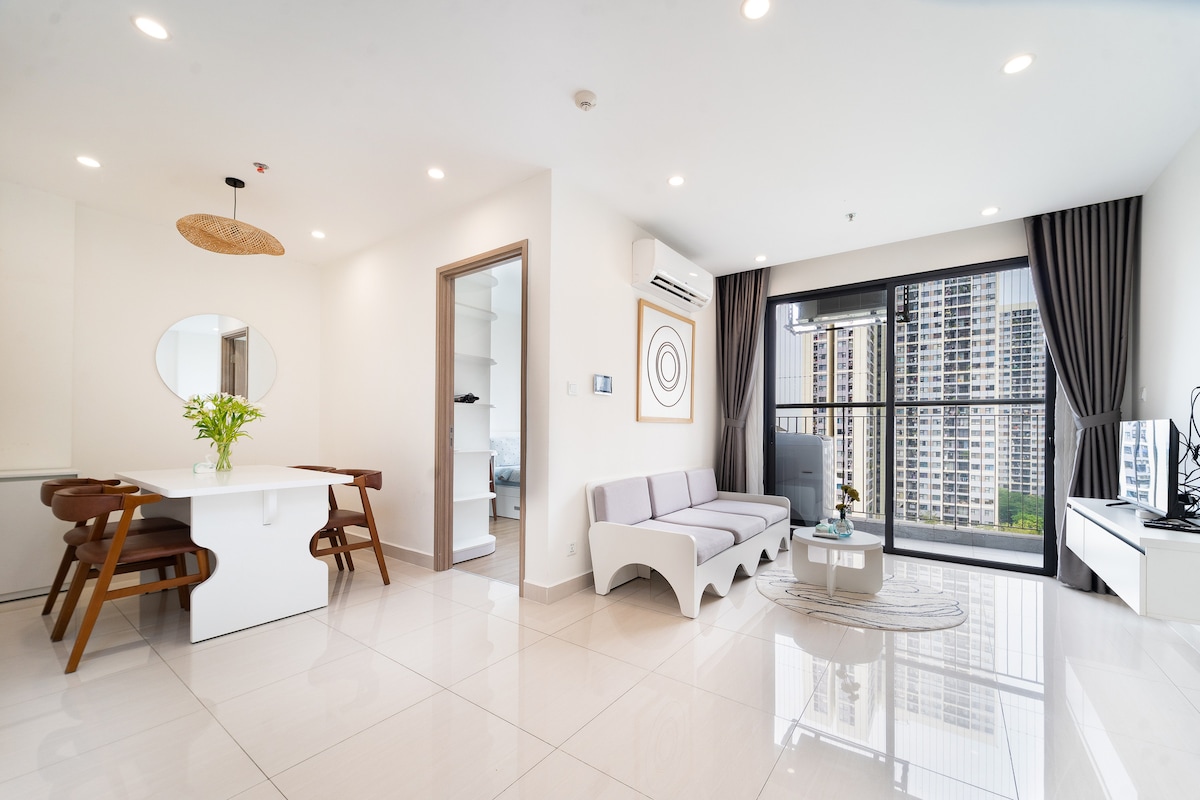 Dobro došli u svoj Scandi-moderni odmor u Vinhomes Grand Parku 🌿 Dizajniran za udobnost i funkciju, naš 2BR stan ima brzi Wi-Fi, namjenski radni sto i kompletnu kuhinju; idealan za duži boravak, rad na daljinu ili porodični odmor ✨ Bilo da ste ovdje zbog posla, produženog vremena s porodicom ili da doživite Saigon kao lokalac, ovaj moderni 2BR je spreman da vam poželi dobrodošlicu☺️ 🔹 Napomena za duže boravke: Za boravke duže od 10 noćenja, naknade za struju, vodu i upravljanje zgradom naplaćuju se zasebno na osnovu potrošnje
