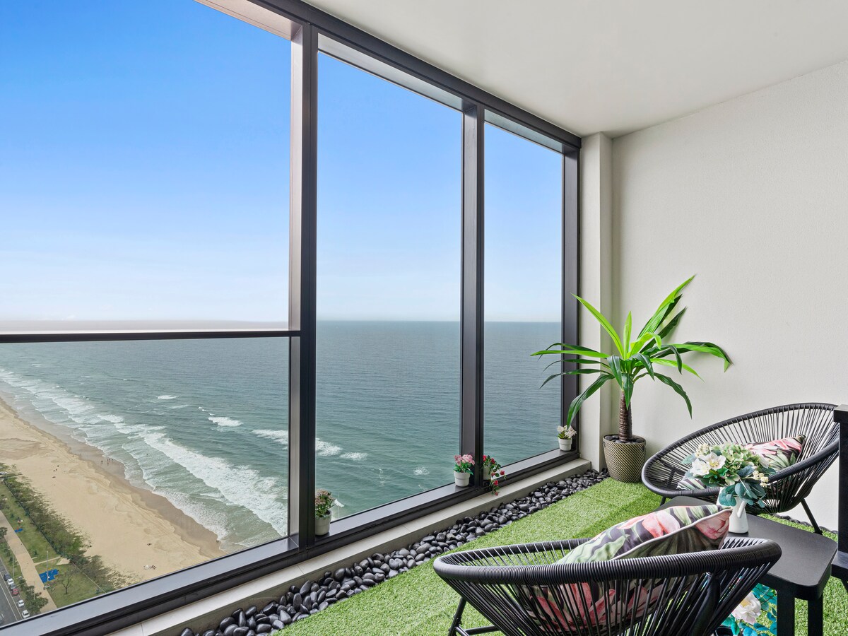 Počastite se romantičnim odmorom u ovom elegantnom studiju s pogledom na okean na 29. spratu u srcu Surfers Paradisea. Savršen za parove, prostor ima plišani bračni krevet, moderno kupatilo, čajnu kuhinju i privatni balkon s pogledom koji oduzima dah. Uživajte u sadržajima u stilu odmarališta, uključujući unutrašnje/vanjske bazene, spa centar, saunu, teretanu, teniski teren i besplatan parking. Samo nekoliko koraka od plaže, Cavill Ave, restorana, noćnog života i prevoza - idealno za opuštanje, romantiku i avanture na Gold Coastu.