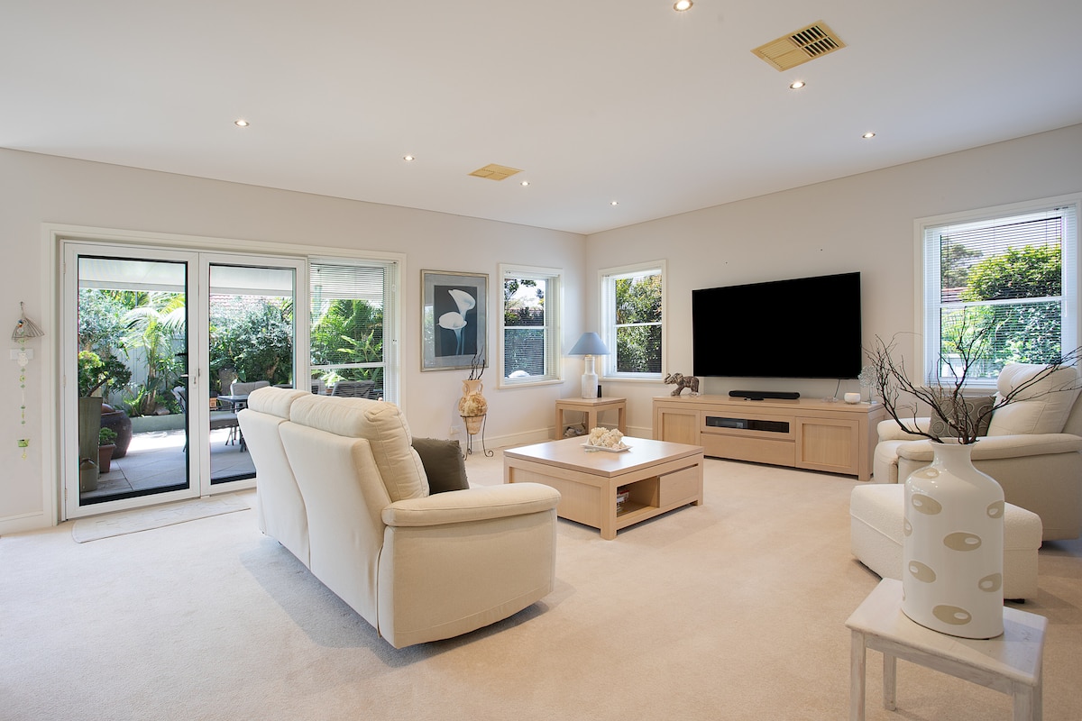 Uživajte u životu u zaljevu među prekrasnim zelenim palmama na našoj velikoj natkrivenoj terasi i slušajte cvrkut ptica. Naš dom je moderna utopija u kojoj ćete uživati u otvorenom planu, modernim uređajima, brzom Wi-Fi mreži i sunčanom aspektu okrenutom prema sjeveru. Udobni kreveti i odličan klima uređaj čine ga savršenim u svakoj klimi. Privatno je, svijetlo i nedaleko od seoskih prodavnica Burraneer i veličanstvenog RMYC-a. Do plaže Cronulla dijeli vas kratka šetnja ili vožnja automobilom. U našoj maloj oazi nije potreban automobil.