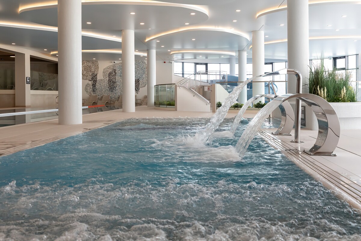 Dobro došli u naš lijepo namješten i potpuno opremljen stan prikladan za porodice. Smještena tik uz rijeku i samo 10 minuta hoda od mora, šume ili jezera, fantastična lokacija vas poziva da se bavite mnogim aktivnostima, ali i da se opustite. U zgradi se nalazi wellness prostor s bazenom, masažnom kadom i saunom. Samo se opustite. Ovdje zaista možete uživati u odmoru.