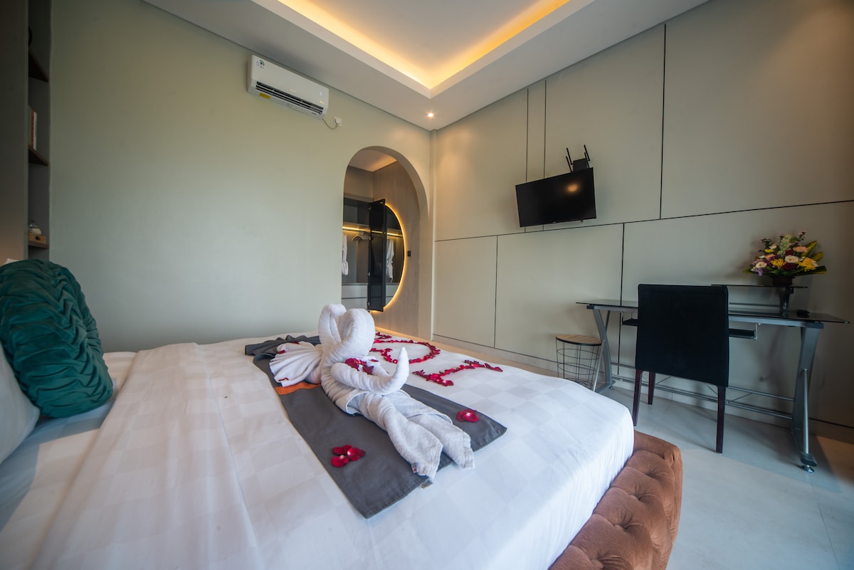 Welcome to our Brand new Suite Room, inspiring soft aesthetic vibes for creative travellers. 1 Bed Room inspired by raw mediterranean design, in the lively & quite place in trendy Canggu area. The property offers a delightful experience of luxury living. The property is minute away from the area's newest upscale restaurant, just a 5 minute drive away, or enjoy the peaceful beach vibes only 7 minutes from your door.