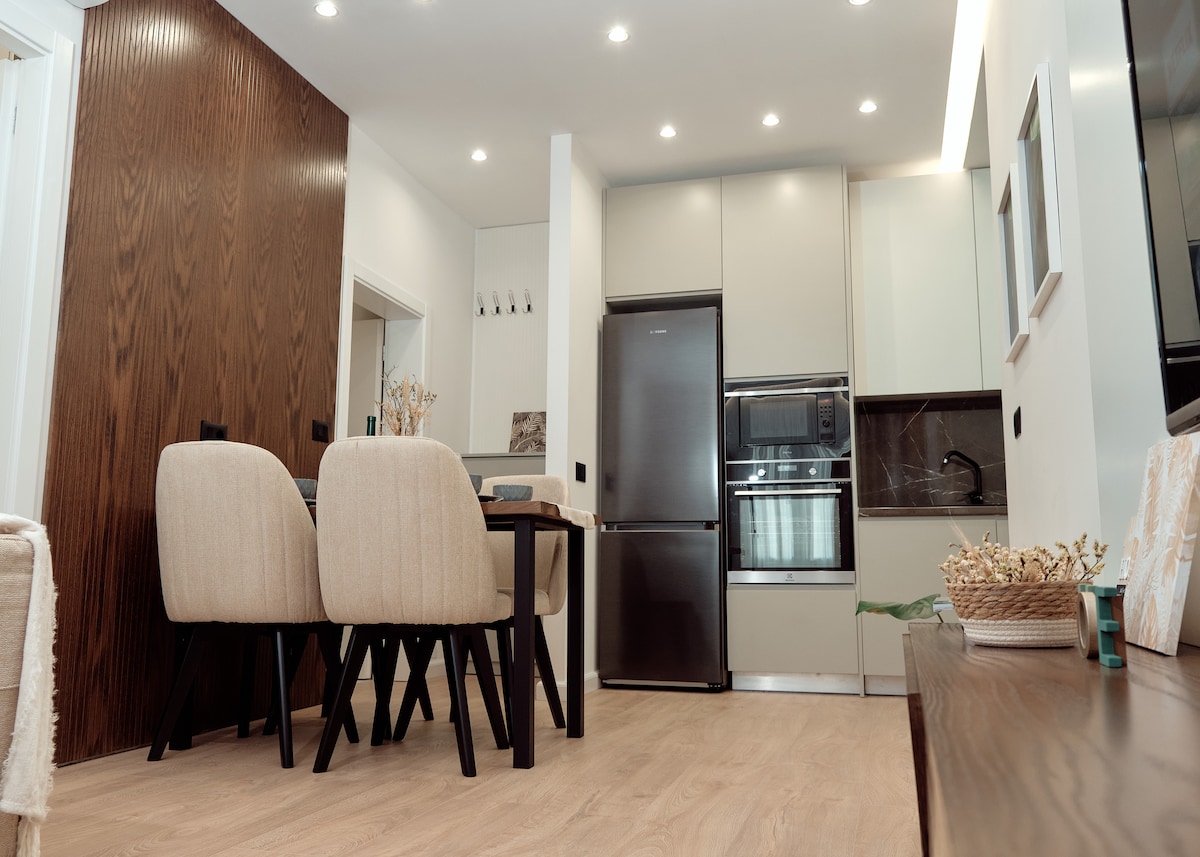 Naš elegantni studio je elegantno utočište za sve. Samo 2 minute hoda do centra grada, Blloka i glavnog bulevara, lokacija je idealna. Moderan enterijer nudi osjećaj jednostavnosti i udobnosti s dobro opremljenom kuhinjom, udobnim krevetom, modernim kupatilom, mašinom za pranje veša i sušilicom. Bilo da istražujete Tiranu ili uživate u mirnoj noći, ovaj studio je savršen izbor! Jedan od dva susjedna stana na istom spratu; provjerite dostupnost „Boutique Flat”. Posjetite: airbnb.com/h/boutiquetr