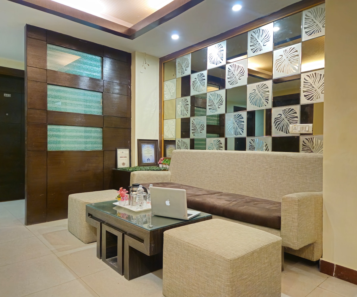 Ova deluxe soba ima 1 veliki krevet ili 2 odvojena kreveta, zajedno s dodatnim krevetom, savršenim za najviše 3 gosta. Samo 5 minuta od ulaza u Taj Mahal, ovaj Airbnb nudi besprijekorno čist, dobro održavan prostor s izuzetnim standardima usluga. Uživajte u bazenu, baru, teretani, spa centru i udobnim krevetima; sve što vam je potrebno za savršen boravak. Korisno i pažljivo osoblje je uvijek spremno da vam pomogne. Bez obzira na to putujete li u slobodno vrijeme ili na posao, osiguravamo nezaboravno iskustvo ugošćavanja.