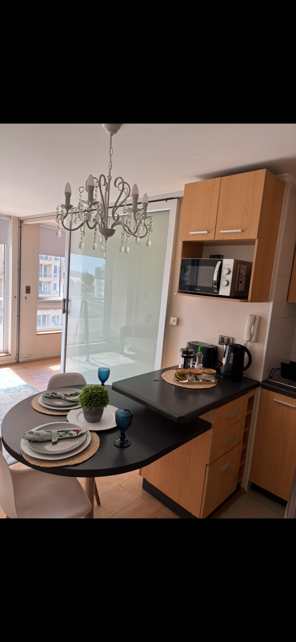 Moderan potpuno opremljen stan, ujutro i poludnevno sunce, s lijepim pogledom na park. Nalazi se na jednoj od najvažnijih ulica velikog Concepcióna, ispred trgovačkog centra Clover Square, u blizini supermarketa, banaka, klinika, pabova i restorana. Ima povlaštenu lokaciju udaljenu 5 minuta od aerodroma. Ima parking i concierge 24 sata dnevno Također ima: - peškire sa tijelo, ruka i lice. - WC školjka - fen za kosu - Kafa, čaj, šećer, šećer, šećer, so i ulje.