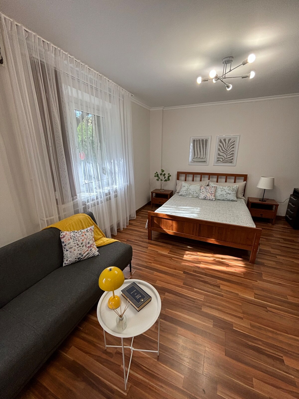 Lokacija, lokacija, lokacija! Uživajte u lijepom doživljaju u ovom smještaju koji se nalazi u centru grada. Naš stan je lijepo renoviran. Dvije odvojene spavaće sobe s bračnim krevetima. Otvorena prijemna soba s kuhinjom. Predivno elegantno kupatilo/WC. Stan je namijenjen ljudima koji moraju boraviti u Almatyju najmanje nekoliko sedmica.