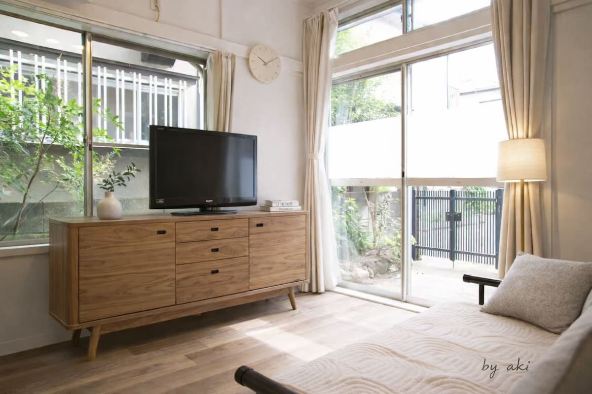 Doživite jedinstvenu mješavinu skandinavskog i japanskog dizajna u ovom renoviranom dvospratnom domu u Sangenjayi, star 86 godina. Sa 80ⓘ (900 ft²) svijetlog prostora, stropom od 3 metra i dramatičnim stropom od 7 metara iznad kuhinje, savršen je za porodice i male grupe. Samo 6 minuta do stanice i 4 minute do Shibuye, kuća nudi savršenu mješavinu mira i gradske praktičnosti u jednoj od najomiljenijih četvrti Tokija, Sangenjayi.