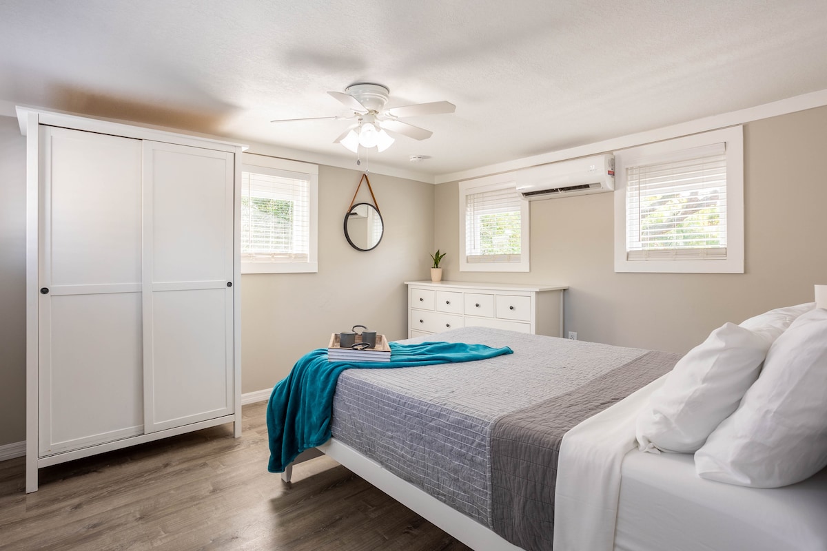 Naša šarmantna seoska kućica za goste s jednom spavaćom sobom na Davisskim ostrvima može primiti 2 osobe (bračni krevet). Kupatilo s velikim tušem. Čista i udobna soba ima kablovsku TV, Wi-Fi, mini frižider, mikrovalnu pećnicu, aparat za kafu Keurig. Prekrasna četvrt, pješačka udaljenost do restorana DI u centru grada, kafići, bicikli za iznajmljivanje, Amalie Arena, Riverwalk, Hyde Park, centar Tampe, Kongresni centar, Channelside & TGH. 2 milje od luke za krstarenje. 15 minuta vožnje do Bush Gardensa. Uživajte u zalasku sunca na kraju ostrva.