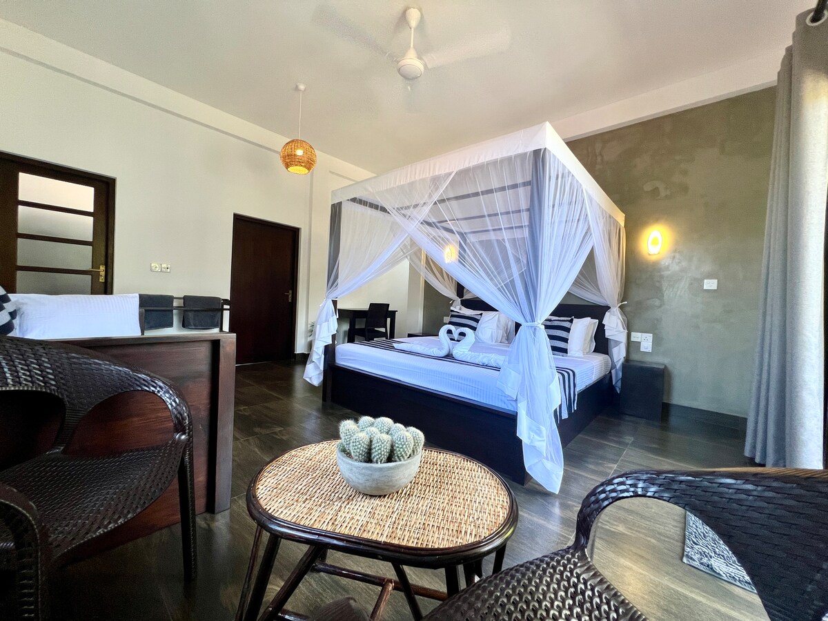 Una piccola e confortevole casa sull'albero da sogno , alla quale non manca proprio nulla. Completamente costruita in legno e con dettagli che lasciano a bocca aperta. La vista sulla laguna ricca di animali selvatici, regala all'alloggio maggior senso di pace e tranquillità. Immersa tra i rami di un grande albero di Tamarindo e situata in un contesto naturale meraviglioso del nostro Resort Jaywa Lanka, è a soli 700m dalla spiaggia e a 1km da Tangalle.