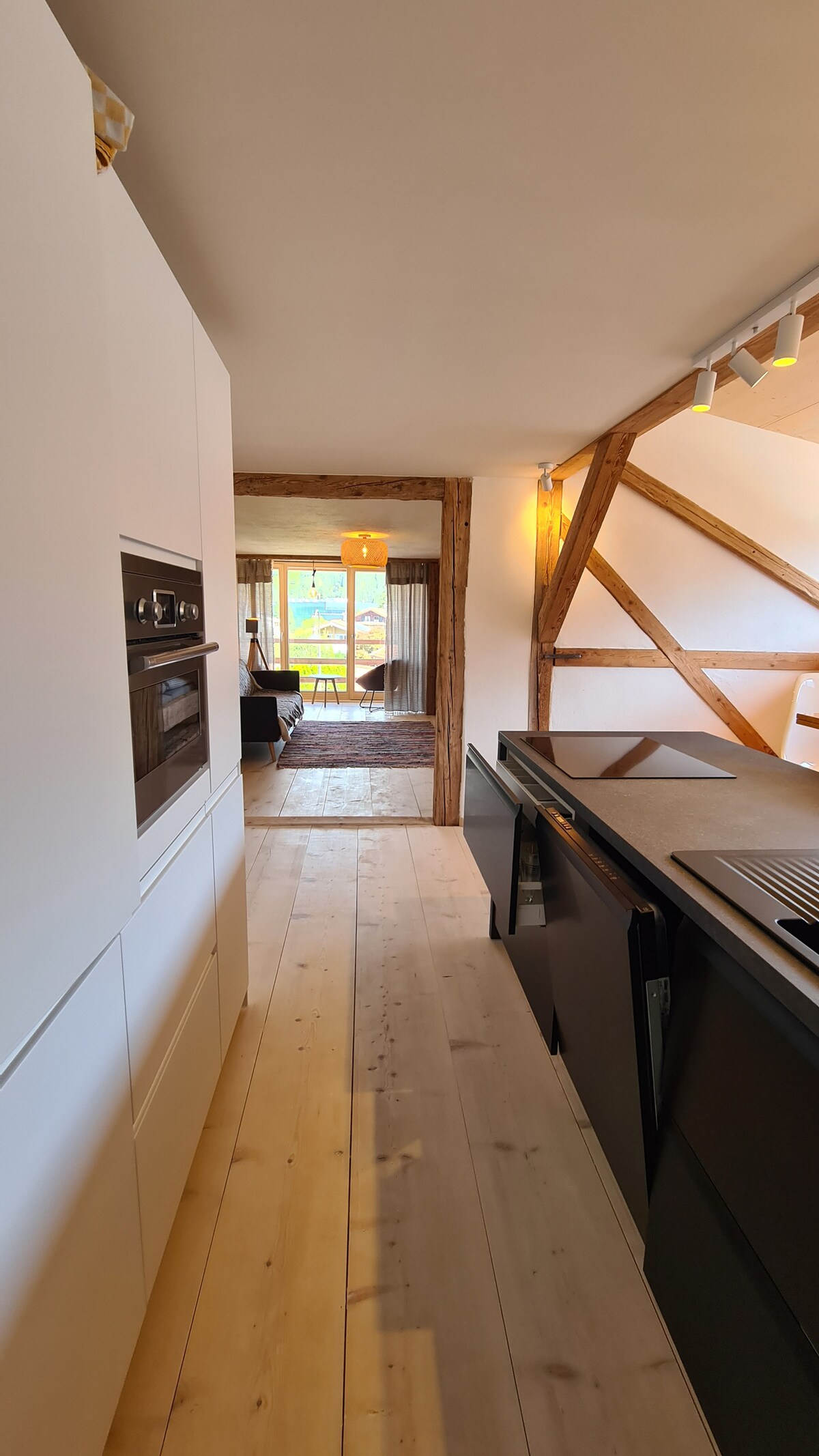 Apartman za odmor se nalazi u našoj kući u prizemlju i savršen je za grupe za ljubitelje planina i prirode i za ugodne večeri. Naš stan je dio 300 godina stare planinske farme, koja se nalazi usred planinskih livada na nadmorskoj visini od 1450 metara. Optimalna lokacija na osunčanom južnom licu garantuje prekrasne sate na terasi s pogledom od 360°. U renoviranom, prostranom stanu (120 m2) pronaći ćete jedinstvenu mješavinu starog šarma i moderne udobnosti.
