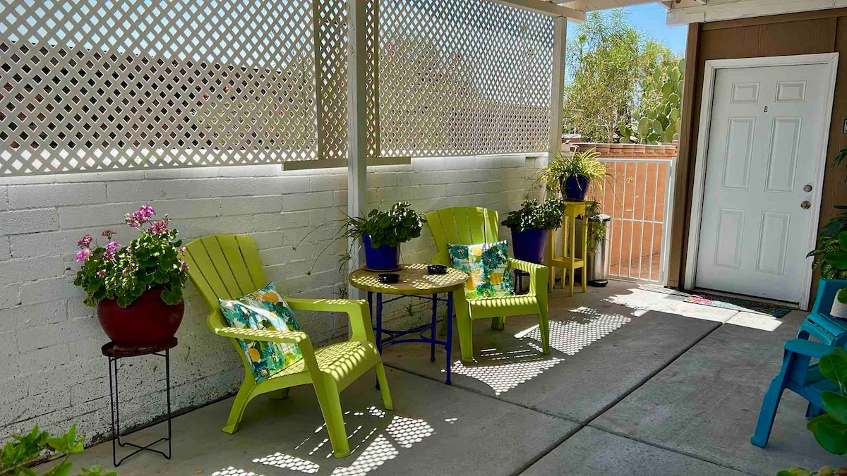 Naš bungalov je prikladan za 2 osobe, ima odvojenu kuhinju, 3/4 kupatila i veliku glavnu sobu za spavanje ili opuštanje. Nudimo privatni ulaz s parkingom na nadstrešnici. Dvorište je ograđeno, s vratima za pse, do 2 sprata su dobrodošla. Nalazi se u centru grada, na samo nekoliko minuta od aerodroma, u centru grada i Univerziteta u Arizoni. Nalazimo se na pješačkoj udaljenosti od parka Reid za golf ili posjetu zoološkom vrtu. Iako smo u centru grada s lakim pristupom mnogim dijelovima grada, iznenađujuće je miran.