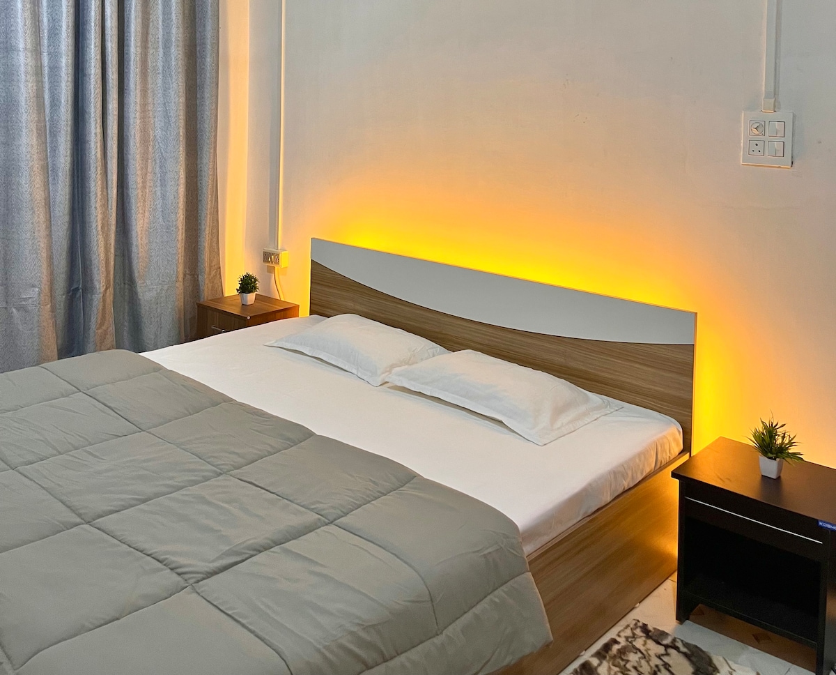 • Your Stay comes with a Complimentary Breakfast • You get the entire 2BHK flat with 2 bedrooms (attached washrooms), kitchen, living room & balcony • You relax in a theatre-style space with a 55" TV • You stay in a prime Jorhat location near Gar Ali Market, cafés & street food • You reach the airport, bus stand & railway station easily • You use the kitchen, rooftop terrace & washing machine freely • You stay in a secure area with a 24/7 caretaker • You enjoy fast Wi-Fi throughout