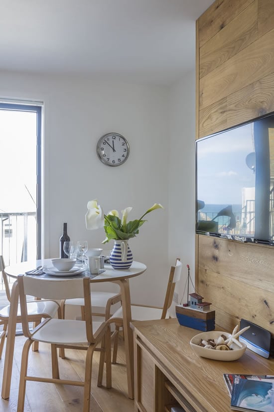 This luxury studio apartment has some of the most breathtaking views of St. Ives harbour, bay and beaches. Located in one of St. Ives oldest buildings in the heart of St. Ives, this modern apartment was designed to keep some features of the original building, whilst making most of the stunning views, whether lounging on the sofa, eating at the breakfast bar, or lay in the comfy bed.