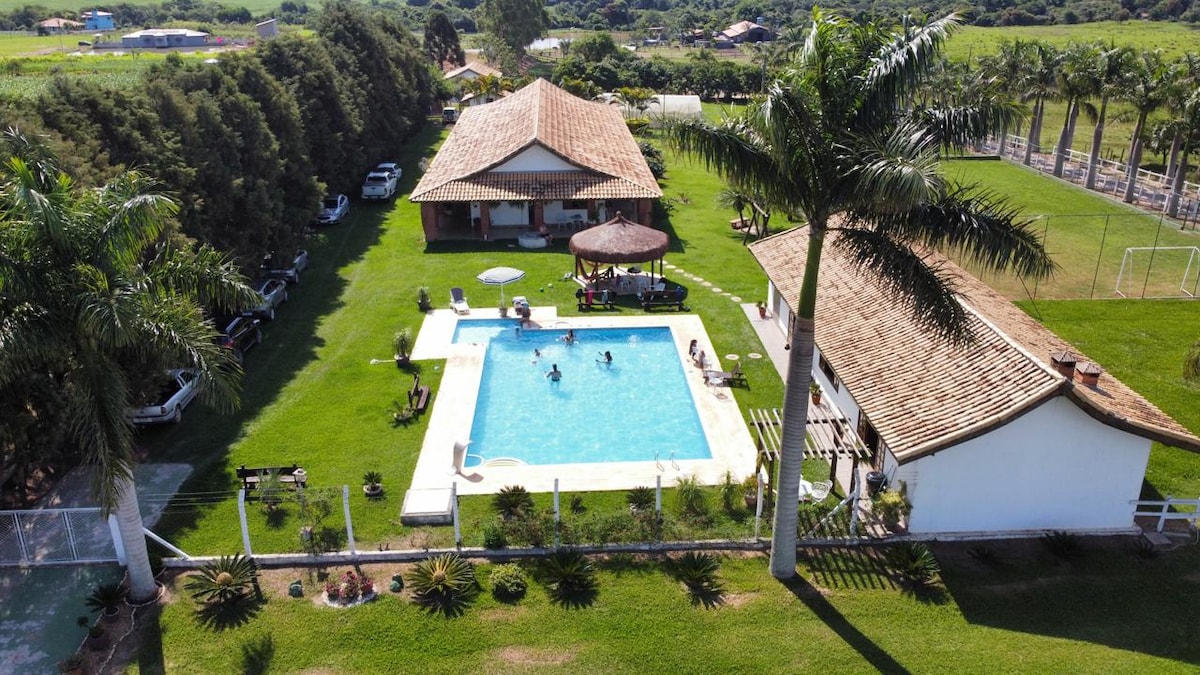 Objekat se prostire na 5.000 m2, s bazenom u blizini prostora za roštilj, sportskim terenom i kompletnom igraonicom (bilijar, stoni fudbal, stoni tenis, video igre i sto za kartanje). Nudi mrežni Wi-Fi s svjetlovodnim internetom od 600 Mbps, satelitskom televizijom, rasporedom na jednom spratu, ravnim terenom, dječijim igralištem i brojnim zajedničkim prostorima, kako u zatvorenom tako i na otvorenom! Nalazi se samo 1 sat od São Paula! Kuća je udaljena samo 10 minuta vožnje od centra grada i centra za padobranstvo i balon.