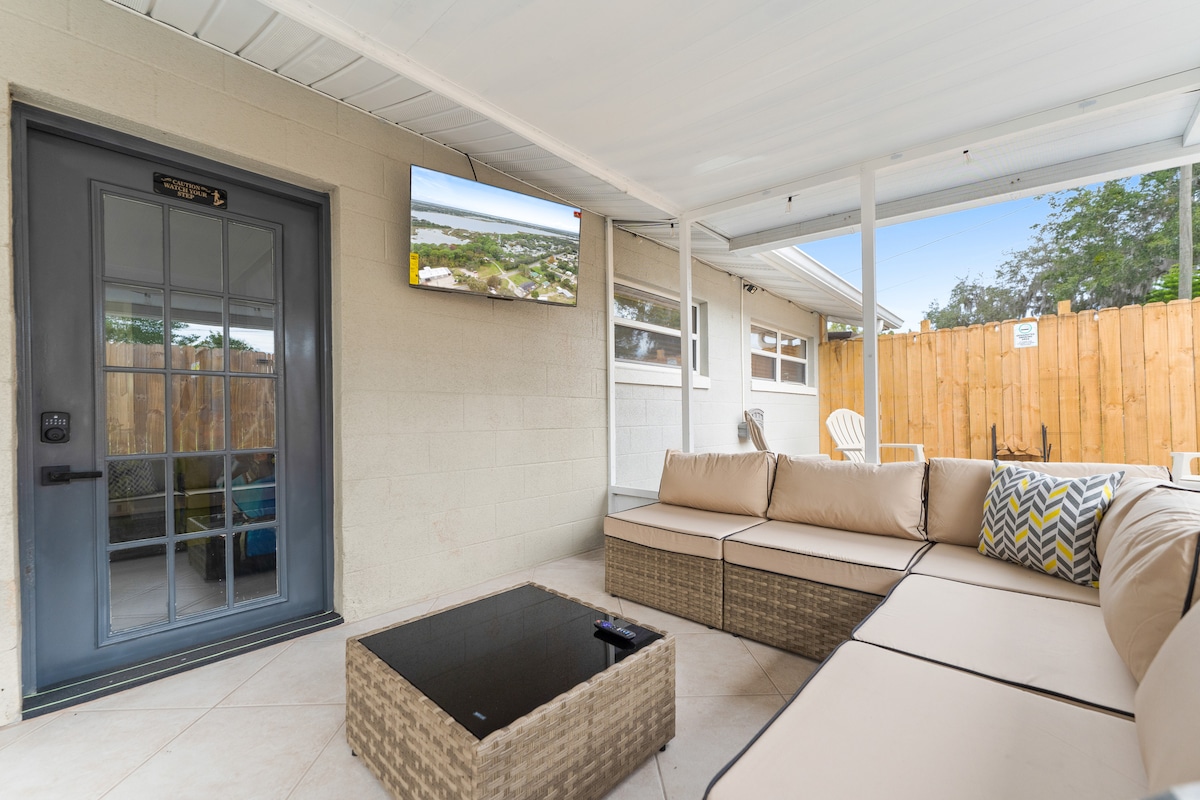 Pješačka udaljenost do svih ponuda Downtown Mount Dora! Naša ljupka seoska kućica s 2 spavaće sobe i 1 kupatilom iz 1940-ih nedavno je renovirana. Sadrži potpuno opremljenu kuhinju, terasu s plinskim roštiljem i vanjski kamin. Udoban i elegantan životni prostor s 65-inčnim pametnim televizorom. Primarna spavaća soba ima bračni krevet (180x200) i pametni TV. Druga spavaća soba ima dva udobna kreveta za dvije osobe. Bicikli su dostupni za upotrebu. Bilo da dolazite da se opustite, brodom, kupujete ili učestvujete u jednom od brojnih svečanosti Mount Dora, razmislite o boravku ovdje!