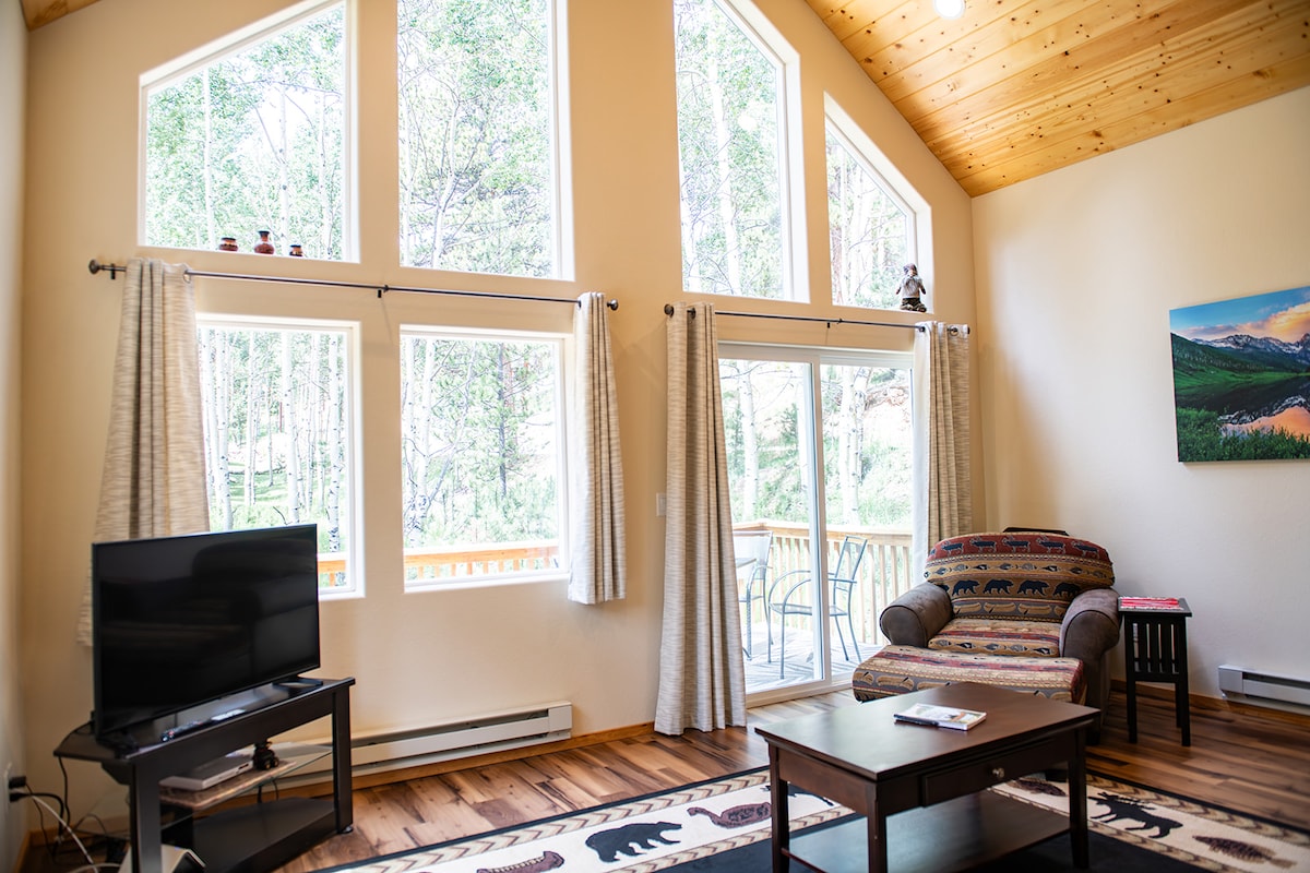 Uživajte u vrhunskom iskustvu odmora u očaravajućem smještaju Tecumseh Lodge, smještenom u blizini planine Pike's Peak, na samo 15 minuta vožnje od centra Woodland Parka. Pobjegnite u utočište osmišljeno za ljubitelje spokoja, ljubitelje prirode i osobe koje rade na daljinu. Probudite se uz zlatni izlazak sunca na našoj prostranoj terasi s udobnim namještajem i grijalicom za zagrijavanje. Navečer se opustite u našoj masažnoj kadi, okruženi svim zvijezdama i prirodom. Rezervišite svoj odmor u Tecumseh Lodgeu za luksuznu mješavinu udobnosti i prirode.