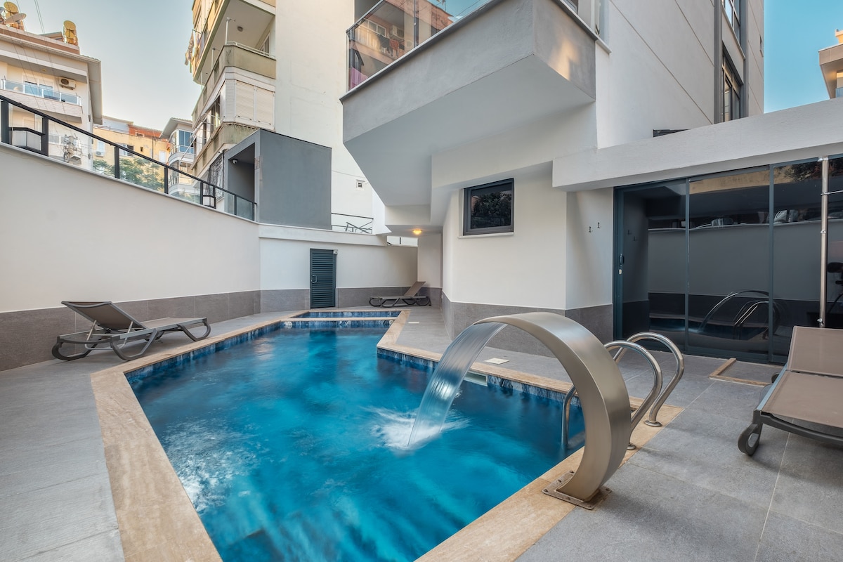 Naša posebna dizajnerska rezidencija nalazi se na padini dvorca Alanya i ima panoramski pogled na plažu Cleopatra i grad. Nudi divan boravak sa svojim modernim dizajnom, velikom terasom, zajedničkim bazenom, udobnim dnevnim boravkom i saunom. Zahvaljujući svojoj centralnoj lokaciji, pruža jednostavan pristup historijskim i turističkim tačkama Alanye. Pogodan je i za kratkoročne i za dugoročne boravke i idealan je za goste koji traže jedinstven i udoban doživljaj.