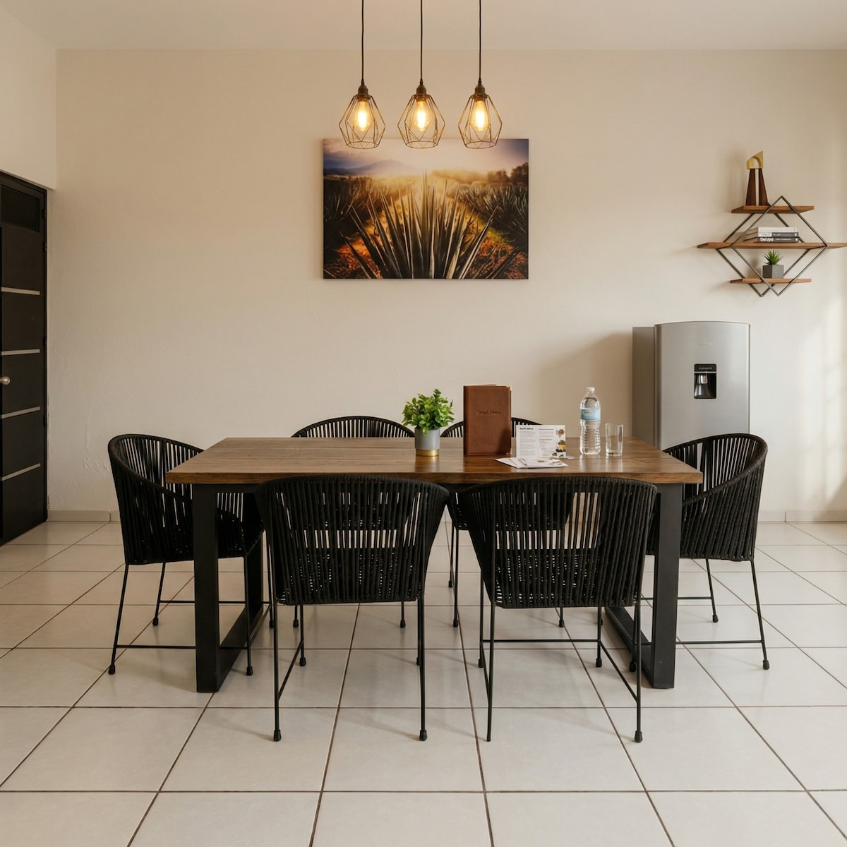 Udobna kuća u centru Tequile, samo dva bloka od glavnog trga. Privatni parking za 2 automobila s električnom kapijom i samostalnim ulazom. Veliki dnevni boravak, trpezarija i kuhinja, TV soba s Wi-Fi mrežom i Smart TV-om. Ima 3 spavaće sobe i 2 kupatila na drugom spratu i 1 spavaću sobu u prizemlju s vlastitim kupatilom i WC. Prirodno osvjetljenje i biljke koje pružaju toplu i ugodnu atmosferu.
